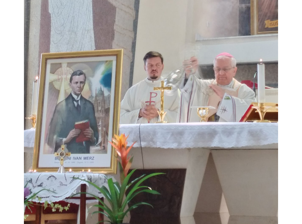 Biskup je na početku misnog slavlja prisutne pozvao na zajedničku molitvu zahvaljivanja Bogu za „njegov divni dar“ u osobi Ivana Merza, prvog blaženika rodom iz Banjolučke biskupije i s područja Bosne i Hercegovine. Također i na prosidbenu molitvu za sve članove Banjolučke biskupije, posebno za sve ugrožene na duši i tijelu, te za sve mlade, posebno one u KŠC-u.