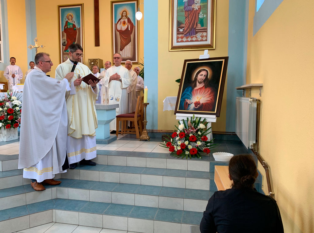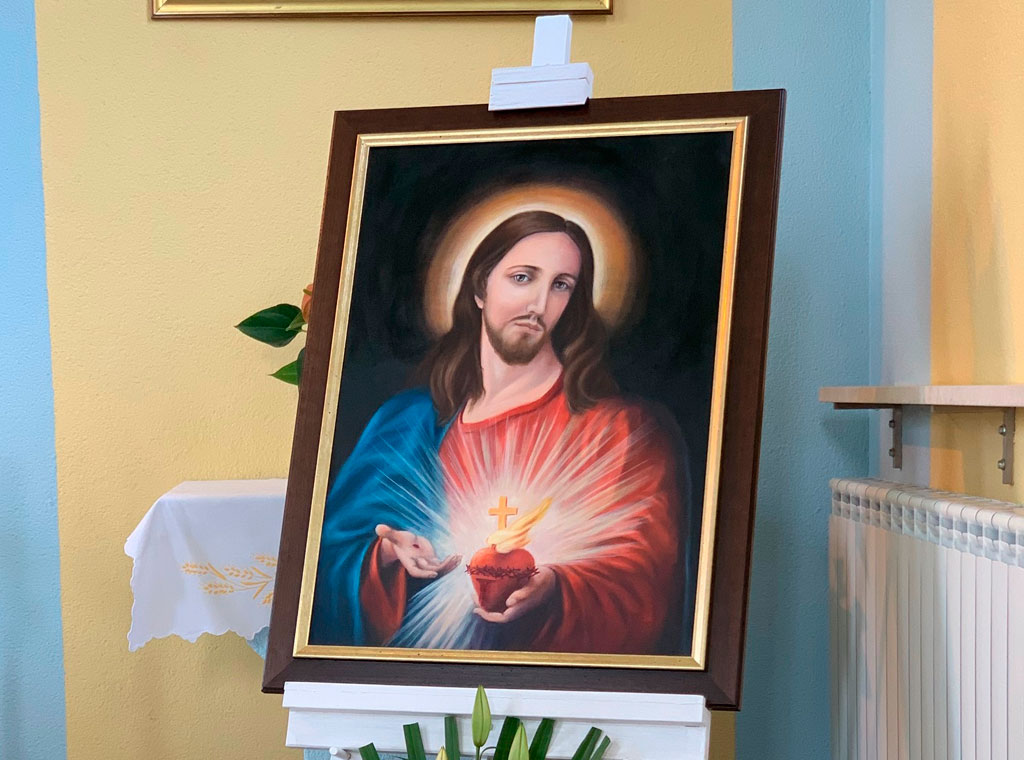 Na kraju mise ekonom Vrhbosanske nadbiskupije posvetio je umjetničko djelo Presveto Srce Isusovo koju je naslikao i darovao slikar Alojzije Gašparević iz Žepča.