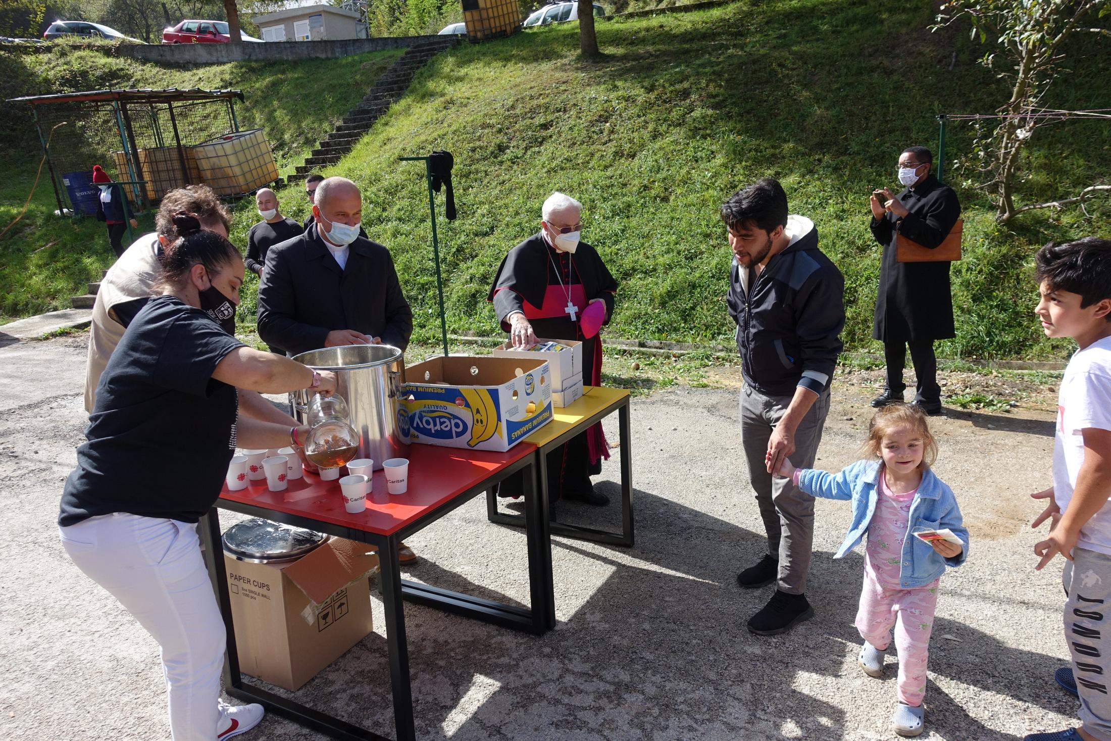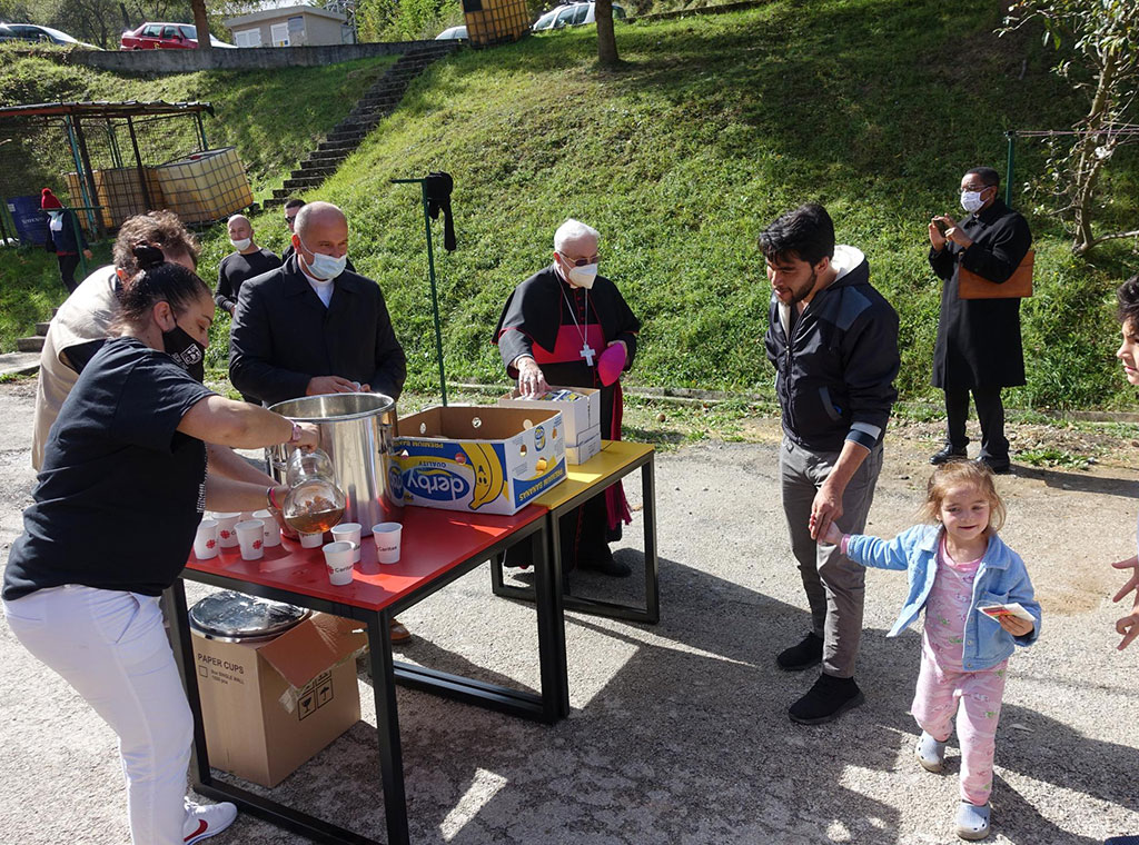 Potom se nazočnima obratio nuncij Pezzuto koji je istaknuo da papa Franjo ima poseban osjećaj za one koji su, zbog različitih socijalnih, političkih, ekonomskih, religijskih razloga, primorani napustiti svoje domovine i u inozemstvu potražiti sigurnost i posao. Dodao je da ovom, iako skromnom donacijom, papa Franjo želi iskazati svoju blizinu korisnicima kampa, među kojima je mnogo djece i maloljetnika bez skrbnika. Kazao je također i da je prostor Službe socijalne animacije namijenjen i prilagodljiv i za potrebe starijih korisnika kampa i za djecu.
