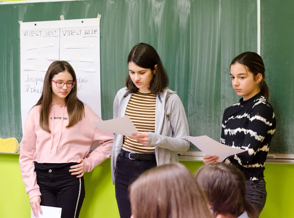 Potom je svaka grupa trebala napisati vijest, s elementima o kojima su slušali, te je uslijedilo zajedničko čitanje i komentiranje istih.