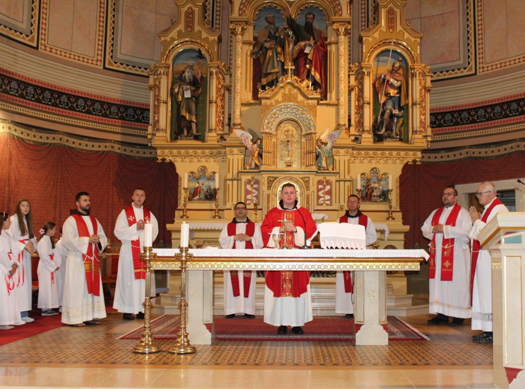 Na samu svetkovinu, 29. lipnja slavljene su tri mise. Središnje euharistijsko slavlje u 10:30 sati predvodio je fra Antonio Gašić. U propovijedi je govorio o milosti i oslobođenju koje Crkva donosi po Božjoj ljubavi: „Crkva otvara svoja vrata kako bi se dogodio susret između Boga i čovjeka. Božje otvoreno srce čeka nas bez uvjetovanja, bez nekakvih aktova ili pravila i nudi nam svoje prijateljstvo.“