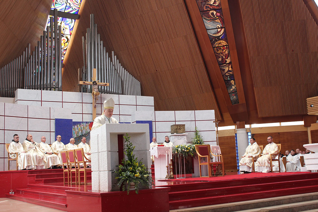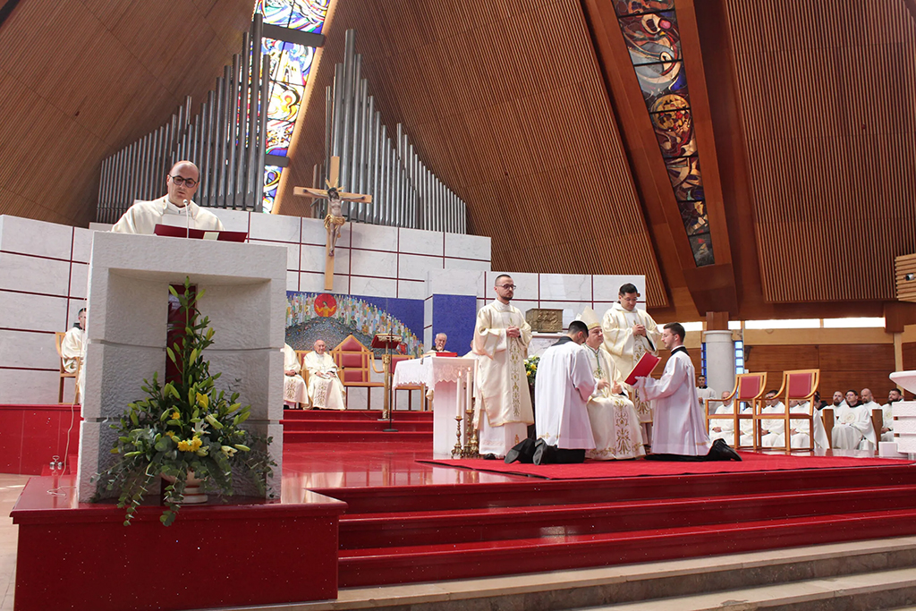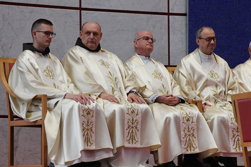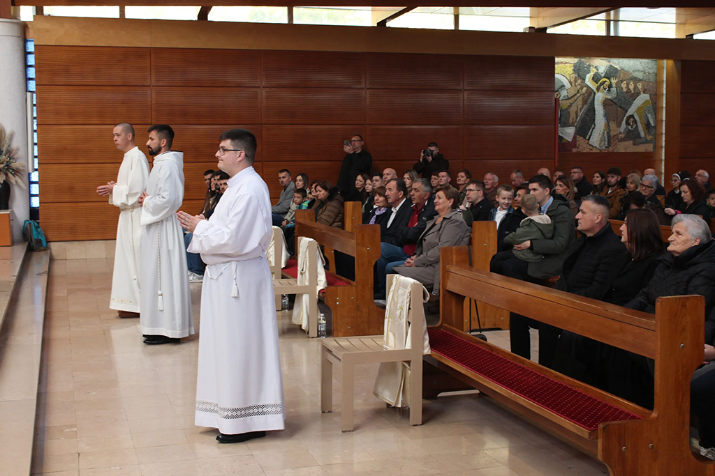 “Krist vas poziva da postanete poput Njega”, zaključio je biskup, pozivajući ređenike da piju iz Kristove čaše te služe s ljubavlju koja se daruje. Homiliju je završio povjeravajući sve, a osobito trojicu novih đakona, zagovoru Blažene Djevice Marije, “najvjernije službenice Riječi Božje”.