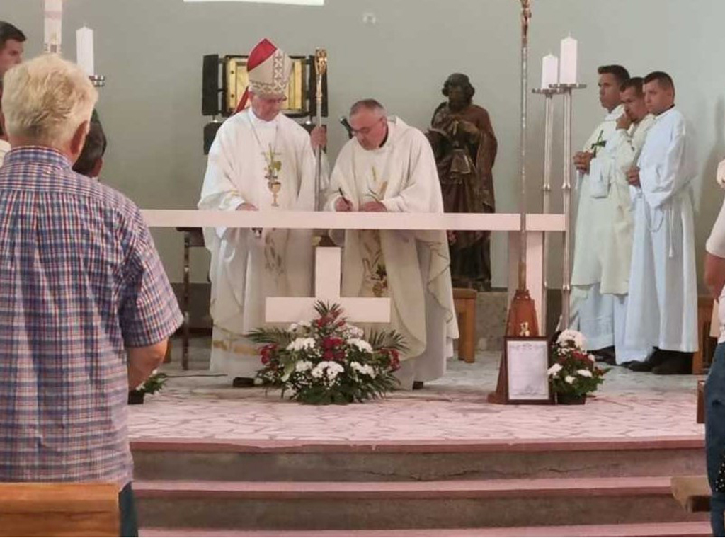 Pri kraju euharistije svima se obratio i domaći župnik vlč. Anušić. Zahvalio je Bogu, biskupu, dobročiniteljima, župljanima te graditeljima iz nekoliko poduzeća – iz Banja Luke, Jajca i Sanskog Mosta.