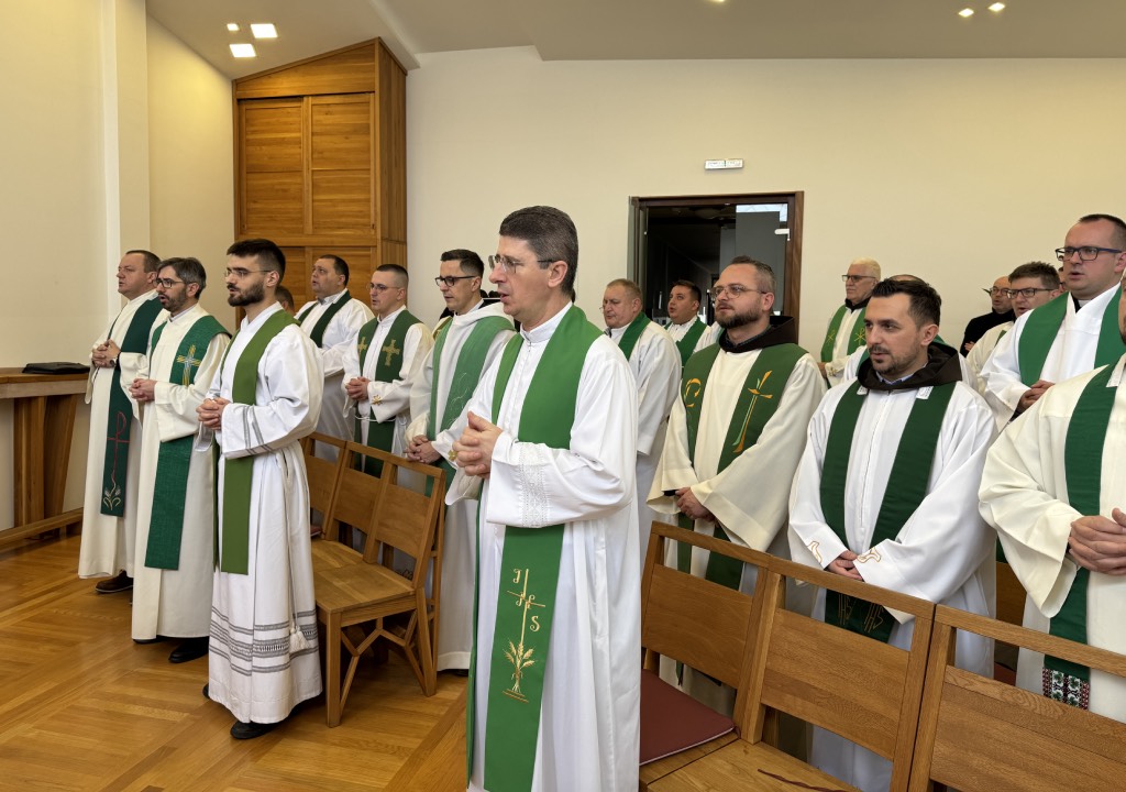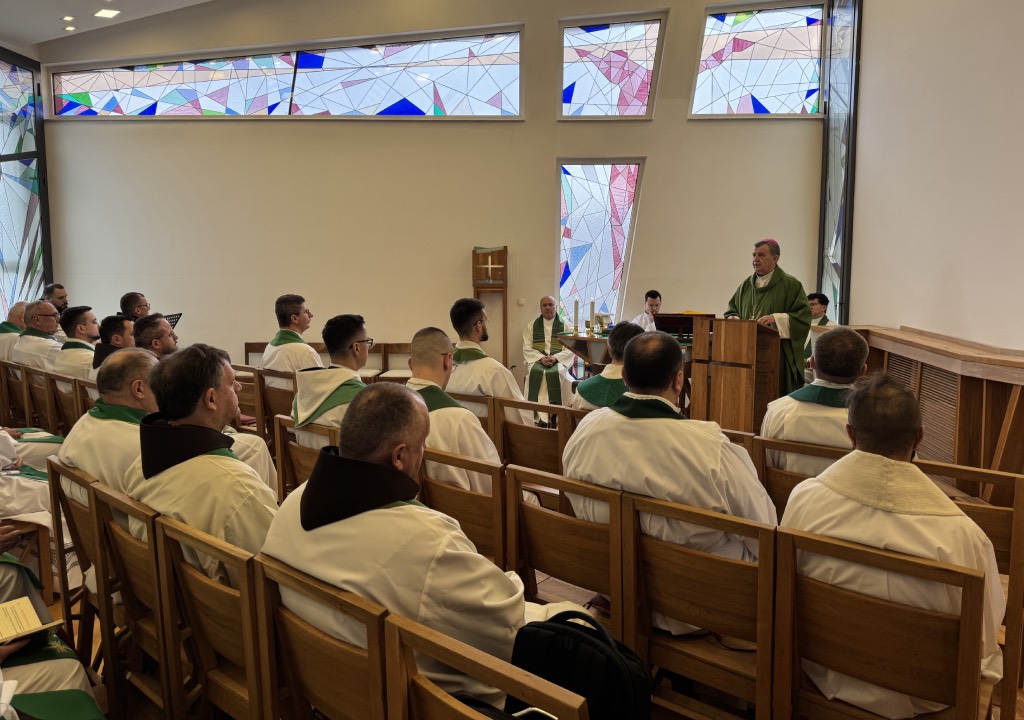 Najprije je u kapelici Centra slavljena sv. misa koju je predslavio vrhbosanski nadbiskup metropolita mons. Tomo Vukšiću koncelebraciji s 40-ak svećenika, među kojima su bili: generalni vikar VN-a mons. Slađan Ćosić, sudski vikar VN-a fra Šimo Ivelj, fojnički arhiđakon preč. Marko Zubak te domaćin susreta vlč. Šimo Maršić, ravnatelj NCM-a Ivan Pavao II.