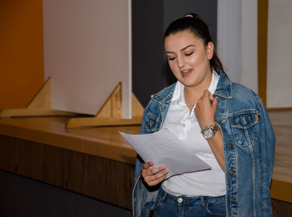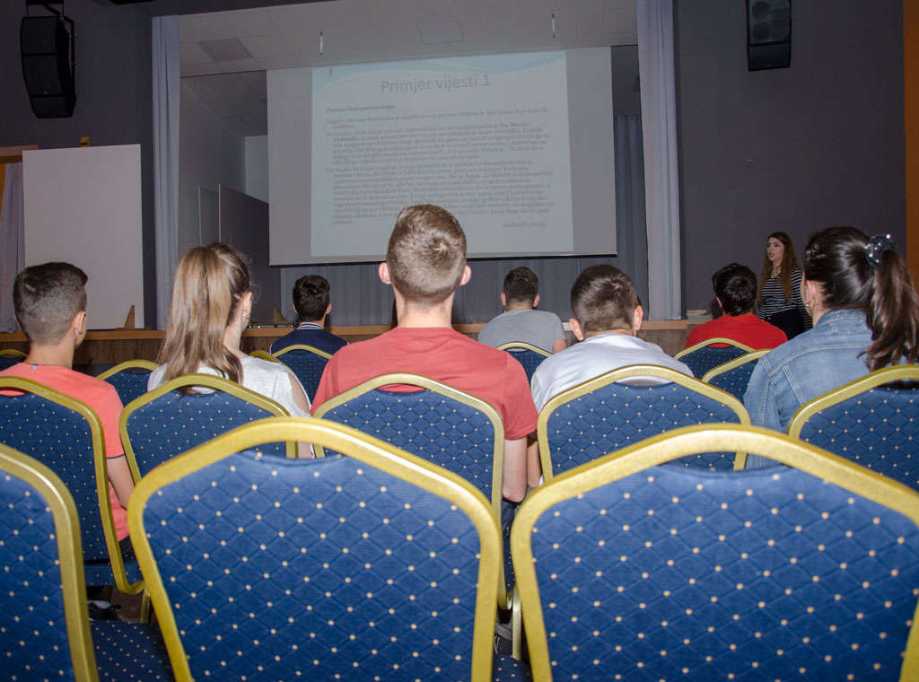 Nakon toga uslijedilo je upoznavanje i predstavljanje tijeka radionice koja se sastoji iz dva dijela. Mladi su najprije kroz igru i prezentaciju s primjerima naučili nešto više o osnovama pisanja vijesti u čijem su se pisanju, podijeljeni u grupe, poslije toga i sami okušali.