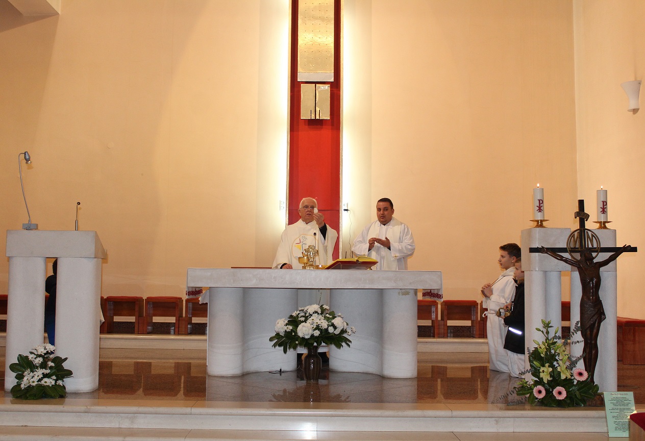 Euharistijsko slavlje u župnoj crkvi uz koncelebraciju župnog vikara vlč. Ivana Mijaća predslavio i tijekom njega propovijedao župnik mons. Marko Tomić.
