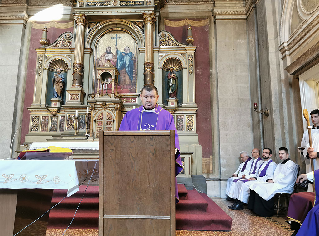 Nazočne je na početku pozdravio rektor Vrhbosanskog bogoslovnog sjemeništa preč. Zdenko Spajić, izrazivši sućut nadbiskupiji i rodbini pokojnika.