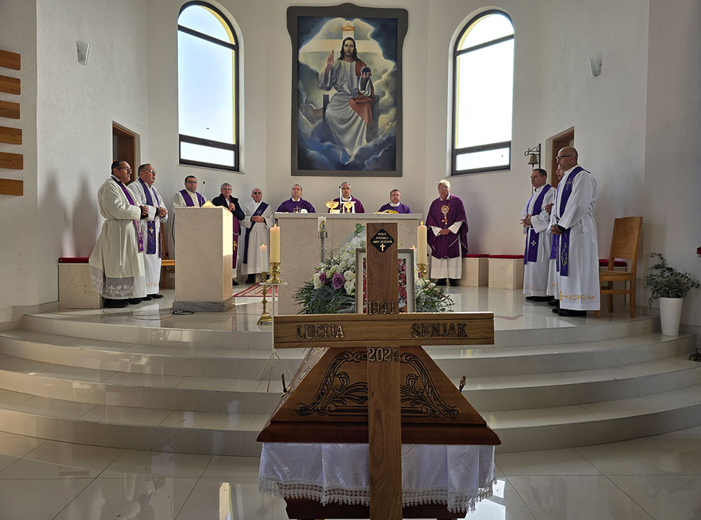 Potom je ocrtavajući život pokojnice istaknuo njezinu vjeru i čestitost. „Vjerodostojna je kršćanka i ponosna Hrvatica koja je uvijek zračila optimizmom i poniznošću gledajući dobrotu u svakom čovjeku. Imala je bistar um i toplo srce. Bila je vjerna Bogu, narodu i svome kraju. Kao prva povratnica na Cer davala je primjer povratka i mogućnosti života. Čime je ulijevala nadu u budućnost ovoga lijepog i ponosnog kraja“, naglasio je mons. Tunjić poručivši kako pok. Lucija „spada među one naše vrijedne žene-majke koje su čuvale i sačuvale našu vjeru“.
