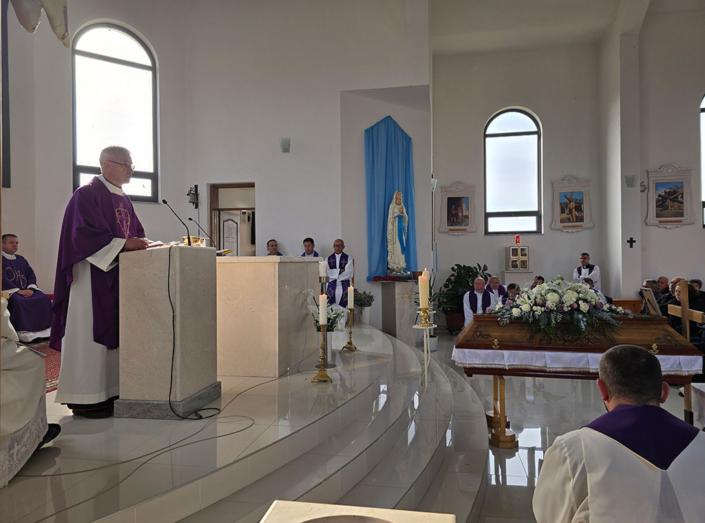 Misu zadušnicu i ukopne obrede predvodio je vrhbosanski kanonik mons. Luka Tunjić, arhiđakon Plehanskog arhiđakonata. Uz sudjelovanje vjerničkoga mnoštva koje je ispunilo župnu crkvu, suslavili su: pokojničin sin svećenik Vrhbosanske nadbiskupije vlč. Josip Senjak, dekan Sesvetsko-vugrovečkog dekanata preč. Zlatko Pavetić, domicilni župnik vlč. Josip Batinić te 30-ak svećenika.