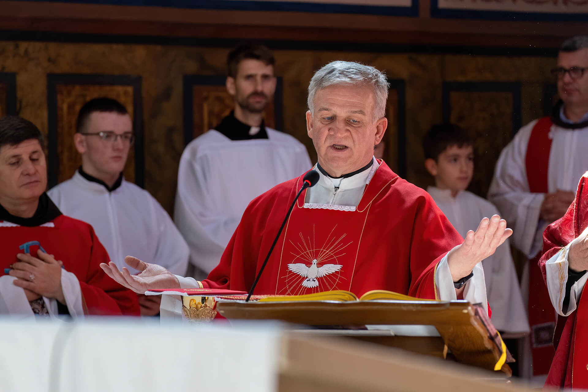 Misu je u sjemenišnoj crkvi slavio vrhbosanski nadbiskup mons. Tomo Vukšić uz koncelebraciju 16-orice svećenika, među kojima su bili povjerenik za pastoral zvanja Vrhbosanske nadbiskupije vlč. Ljubo Zadrić i rektor travničkog sjemeništa preč. Željko Marić.