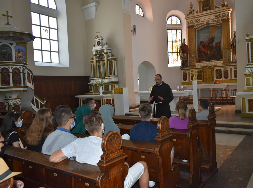 Na početku, mlade je u ime organizatora pozdravila Nadežda Mojsilović, djelatnica NCM-a i koordinatorica na projektu Koračajmo zajedno. Uslijedio je zatim posjet franjevačkoj crkvi Sv. Ilije, gdje ih je dočekao župnik fra Marko Kepić. On ih je upoznao s arhitektonskom vrijednošću ove crkve, te djelovanjem franjevaca u Bosni i Hercegovini.
