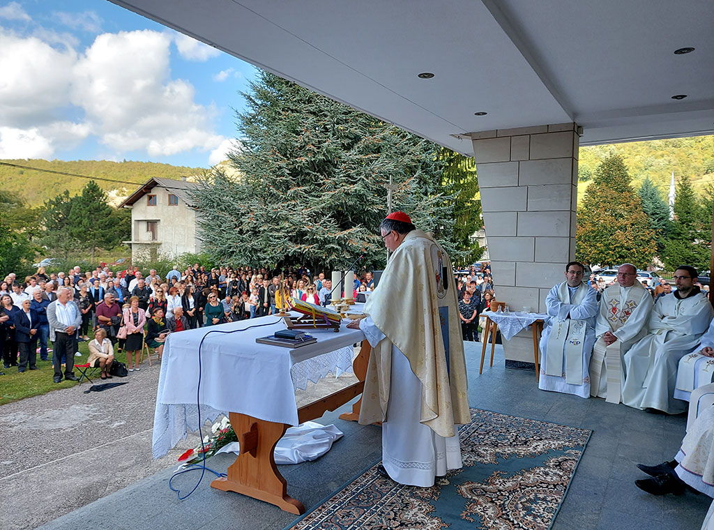Nakon svetopisamskih čitanja i naviještenoga Evanđelja, kardinal je na početku homilije sve pozvao da zahvale Bogu za lijep dan koji je providio za proslavu patrona župe. Zatim je progovorio o Sv. Maloj Tereziji istaknuvši kako je ona obećala da će „sipati iz neba ruže svojim zagovorom“. „Zato obično i blagoslivljamo ruže uz njezin blagdan. A zapravo to simbolizira one milosti koje nam ona isprosi. Ona je dakle zagovornica i svi joj se preporučamo u svojim potrebama. Ali danas na poseban način, uz njezin zagovor, želimo i učiti od Sv. Male Terezije“, rekao je nadbiskup Puljić, te izdvojio neke karakteristike svetičina lika i djela koje smo kao vjernici pozvani nasljedovati. „Ona svojim riječima i djelima daje snažnu poruku cijeloj Crkvi (…) Ostala je rano bez majke i bila je vezana uz oca i otac je bio povezan s njom, ali nije bio navezan. On joj daje dozvolu da ide u samostan. Ovdje bih se zaustavio pred jednim mojim pastirskim iskustvom. Doživljavam da mnogi roditelji ne znaju pomoći djeci da odrastu, da postanu samostalni, da pođu u život odgovorno. Roditelji ostaju navezani na dijete i ne daju mu sazrjeti (…) Neka dijete nauči da se ne može svaka njegova želja ispuniti. Danas na poseban način moramo naučiti kako odgojiti za žrtvu. Tajna je u ljubavi“, snažno je pozvao vrhbosanski nadbiskup.