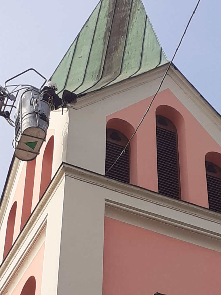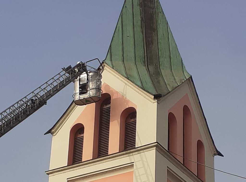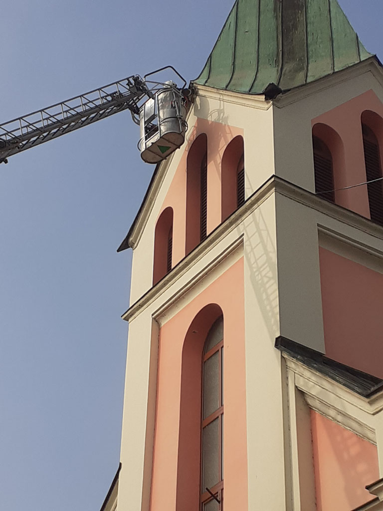 Uz nazočnost pripadnika policije vatrogasna jedinica je 16. siječnja brzom intervencijom uklonila nesigurne i napukle dijelove vanjske fasade na zvoniku