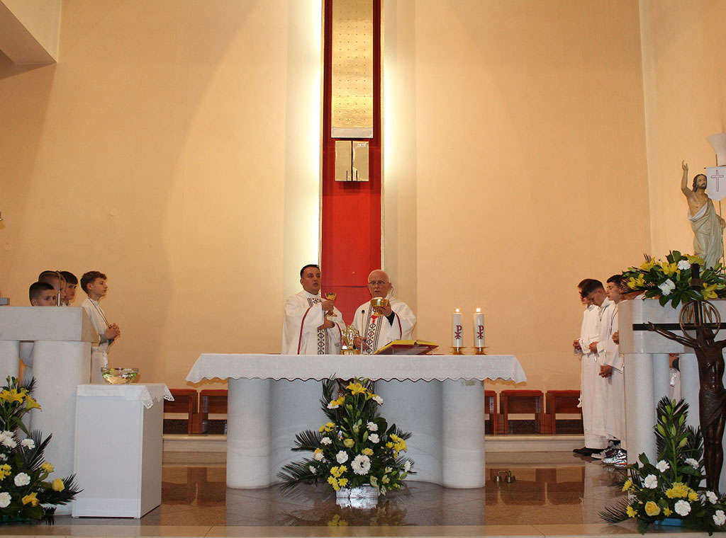 Euharistijsko slavlje svojim pjevanjem i sviranjem uljepšali su članovi mješovitog župnog zbora pod ravnanjem s. Anđeline Perić, SMI i glazbenu pratnju Ane Topić.