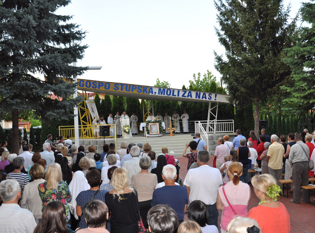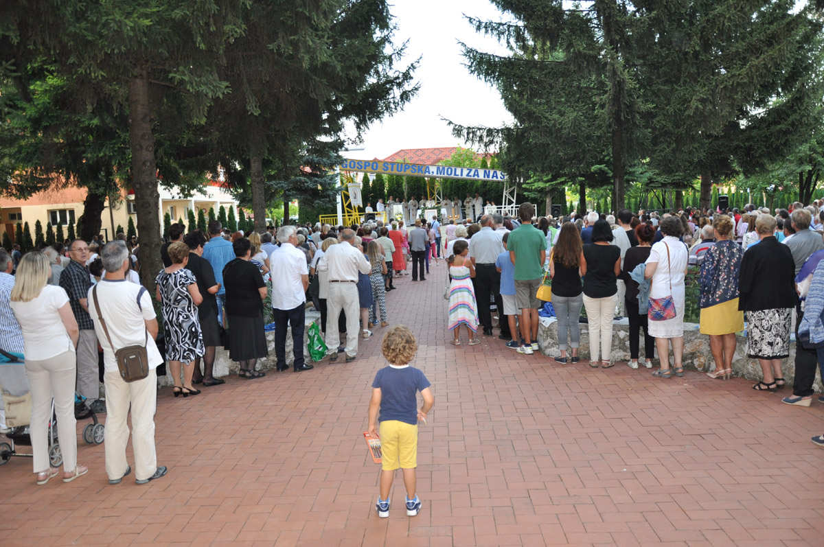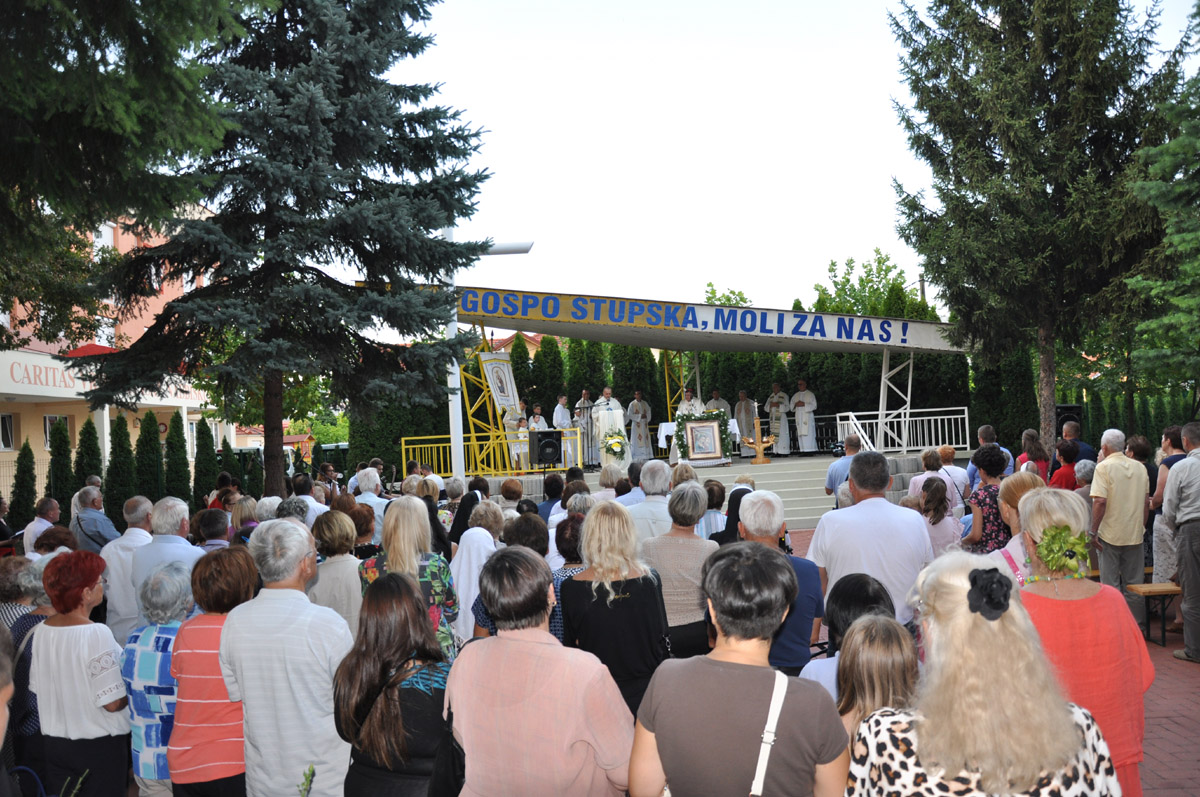Svečanost je započela procesijom od župne crkve do vanjskog oltara sa slikom Gospe Stupske gdje je nazočne pozdravio župnik vlč. Miroslav Ćavar zaželjevši svima dobrodošlicu, a posebno kard. Puljiću koji već tradicionalno predslavi misu na Stupu za Veliku Gospu.