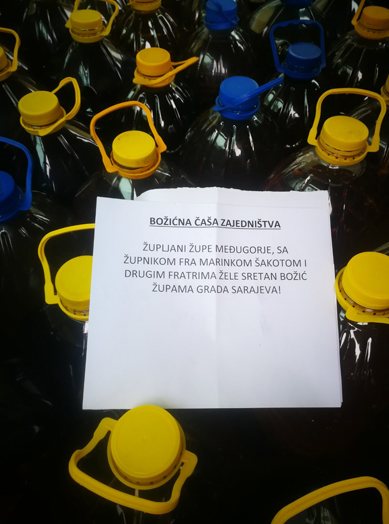 Župljani župe Sv. Jakova apostola iz Međugorja i ove su godine u predbožićno vrijeme darovali vino za sarajevske župe i bazar u Katoličkom školskom centru "Sv. Josip" te još nekim katoličkim institucijama.