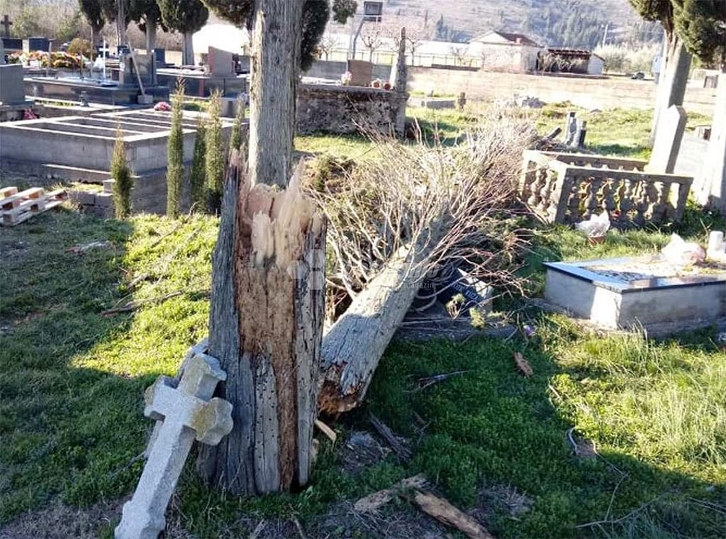 Kako su za Bljesak.info rekli mještani ovog naselja, vjetar je čupao visoka stabla iz korijena, koja su potom sa sobom podignula cijele grobove. Oštećeni su i nadgrobni spomenici uslijed pada težih grana na njih.