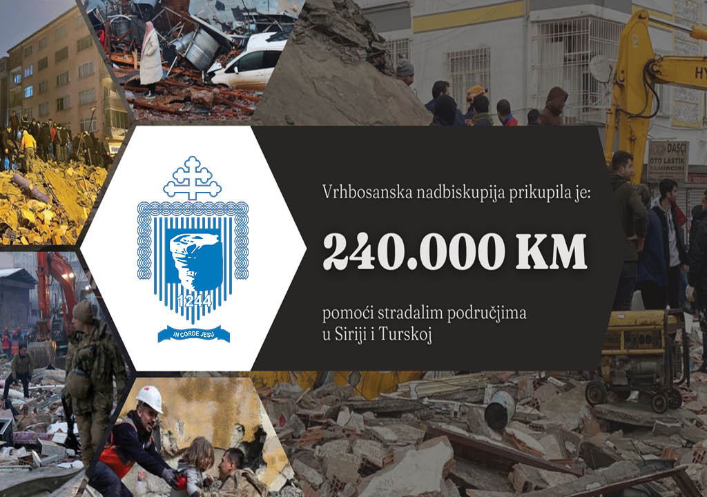 Župe i samostani u Vrhbosanskoj nadbiskupiji u nedjelju, 19. veljače pod sv. misama prikupljali su dodatnu milostinju za potresom stradala područja u Siriji i Turskoj te su skupili iznos od 240.000 KM.