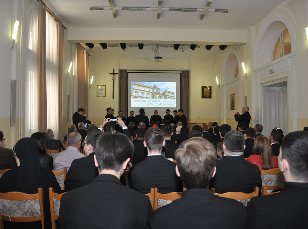 Svečanu akademiju u dvorani Pavla VI. na VBS-u otvorio je nastup bogoslovnog zbora Stjepan Hadrović pod ravnanjem vlč. Marka Stanušića, a potom su riječi pozdrava uputili generalni duktor bogoslova Josip Dedić i rektor VBS-a preč. Josip Knežević.