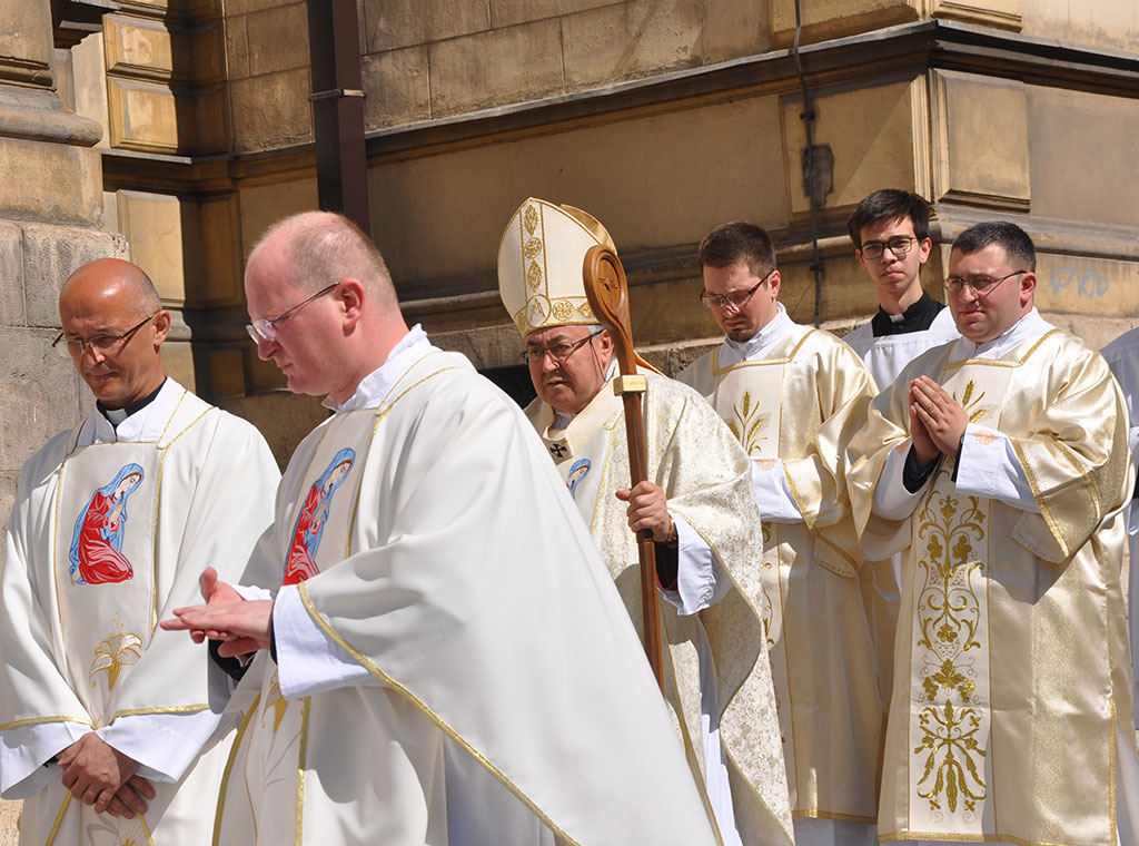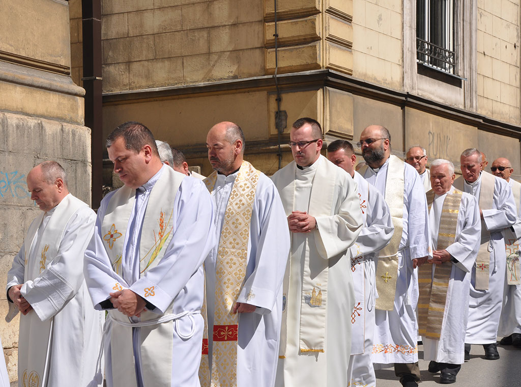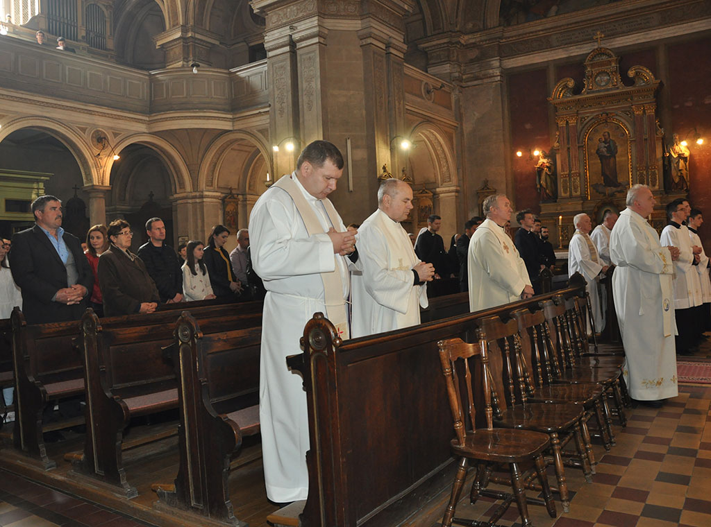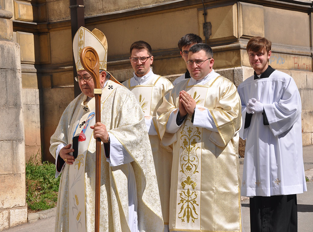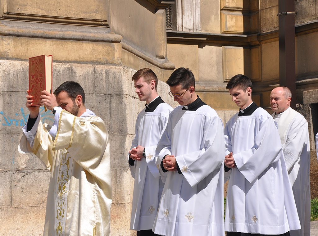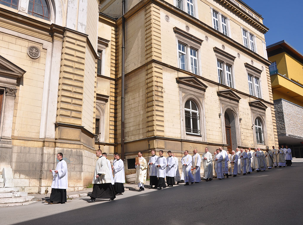 Uslijedila je procesija do sjemenišne crkve Sv. Ćirila i Metoda gdje je svečanu misu predvodio kardinal uz koncelebraciju 20-ak svećenika. Pred početak bogoslužja preč. Knežević je pozdravio kardinala, svećenike, bogoslove i njihovu rodbinu te ostale vjernike, a uslijedio je pozdrav vrhbosanskog nadbiskupa koji je sve pozvao na molitvu za VBS i duhovna zvanja.