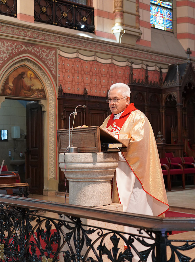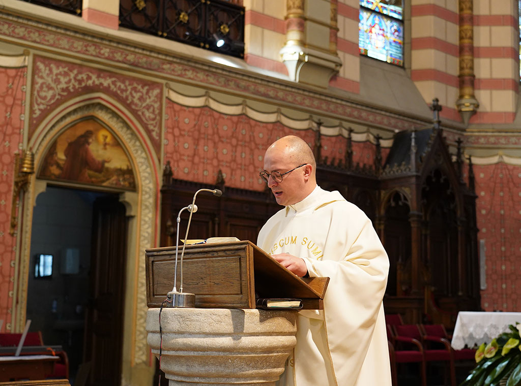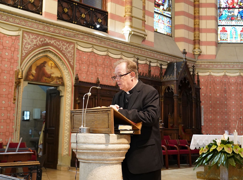 Nakon svetopisamskih čitanja i naviještenog Evanđelja u prigodnoj je homiliji nastojao „s nekoliko misli povezati radost glazbe i vjeru u Boga“. „Jedan se orkestar sastoji od mnogih instrumenata (...) U zajedničkom skladu instrumenata nastaje harmonija koja kompoziciji daje život. Istina, postoje i solistički koncerti, ali mi se ovdje osvrćemo na glazbene skupine, zborove.