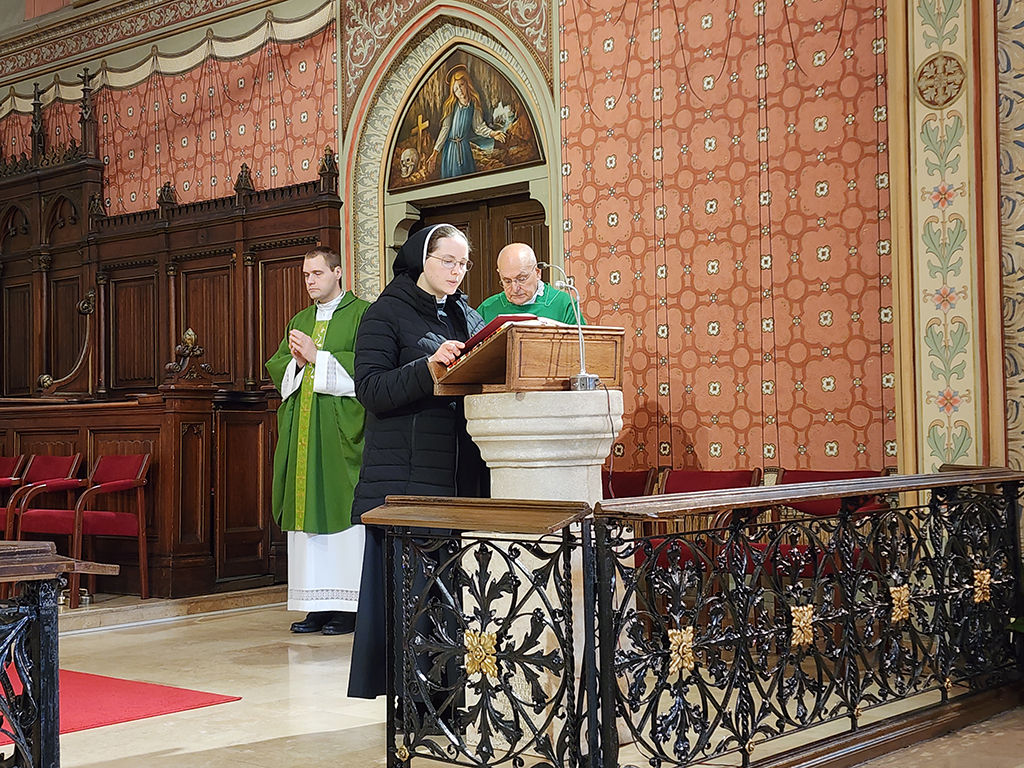 Prije početka svete mise, pod vodstvom s. Petronile i uz pomoć s. Nikoline Cvitanović, vjeroučenici i vjeroučenice, obučeni u bijele haljine i držeći u rukama Bibliju i svijeće, izveli su recital o Božjoj riječi koja svijetli u svijetu. Uvodeći u svetu misu župnik mons. Tomašević zahvalio je mladima što su zorno prikazali važnost Božje riječi u svakodnevnom vjerničkom življenju. Misna čitanja čitale su Služavke Malog Isusa s. Nikolina i s. Mihaela Mihaljević, a evanđeoski misni odlomak navijestio je vlč. Endrich. Liturgijsko pjevanja animirao je župni zbor pod vodstvom i uz orguljsku pratnju s. Petronile.