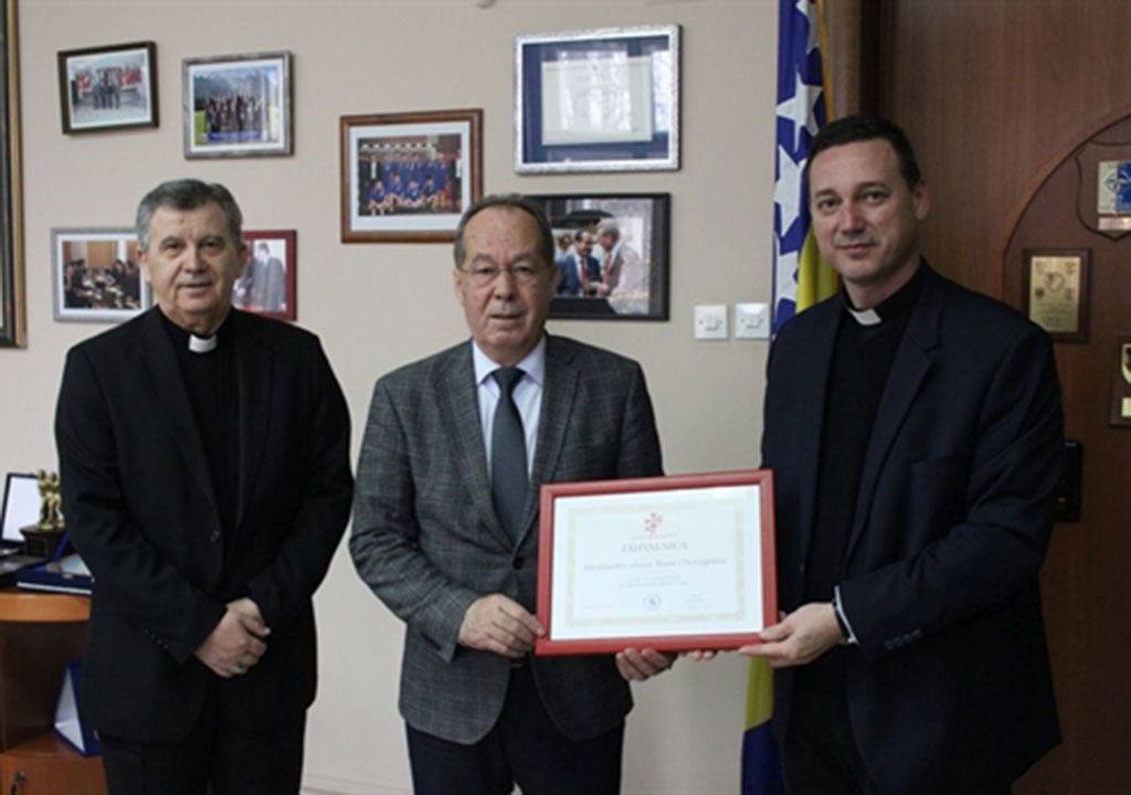 Zahvalnicu su uručili vrhbosanski nadbiskup i apostolski upravitelj Vojnog ordinarijata u BiH mons. Tomo Vukšić te stručni savjetnik Vojnog ordinarijata u BiH don Josip Tadić, koji je inače i župnik u Goraždu.
