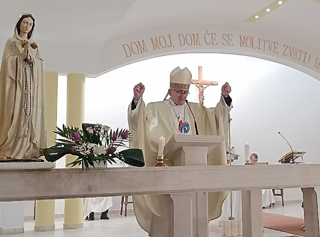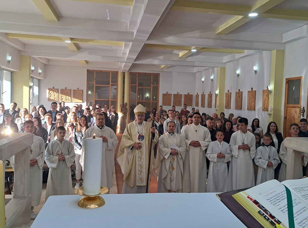 Na početku svete mise, biskup Majić pozdravio je nazočne vjernike i svećenike, a na poseban način dobročinitelje koji su sudjelovali u projektu obnove crkvenog dvorišta.