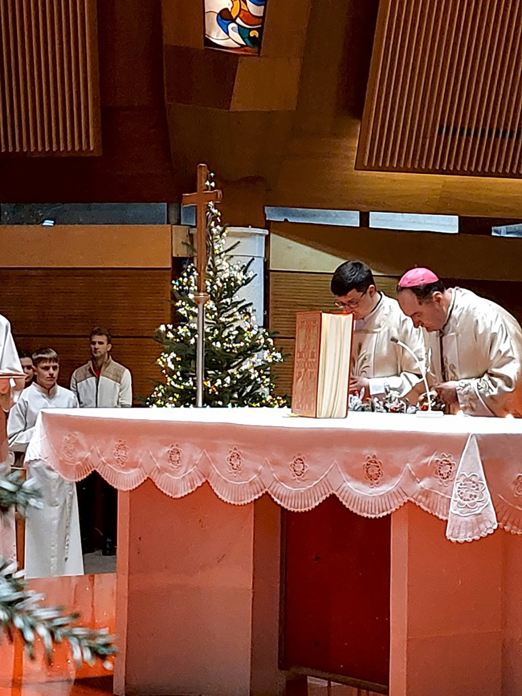 Mnoge su naše obitelji iskusile što znači bježati, ostaviti sve iza sebe, započeti iznova na nepoznatom mjestu. Mnogi su iskusili bol Rahele koja 'oplakuje svoju djecu i ne da se utješiti jer ih više nema'. Pa ipak, evo nas. Još stojimo. Još vjerujemo. Još se nadamo. To nije naivni optimizam. To je kršćanska nada, nada koja intimno poznaje patnju, ali odbija dopustiti da patnja ima posljednju riječ“, kazao je biskup Petar, naglasivši kako u ovoj biskupiji danas imaju poseban razlog za nadu: „Dragi bogoslovi, vi koji ćete tijekom ove mise primiti službe lektora i akolite, vi ste znakovi nade za našu Crkvu. Vaše Da' Božjem pozivu odjekuje Marijinim 'Neka mi bude' i Josipovim poslušnim povjerenjem“, potaknuo je propovjednik i poručio bogoslovima kako nas njihove službe podsjećaju da nada nije pasivno čekanje, već je nada aktivna služba.
