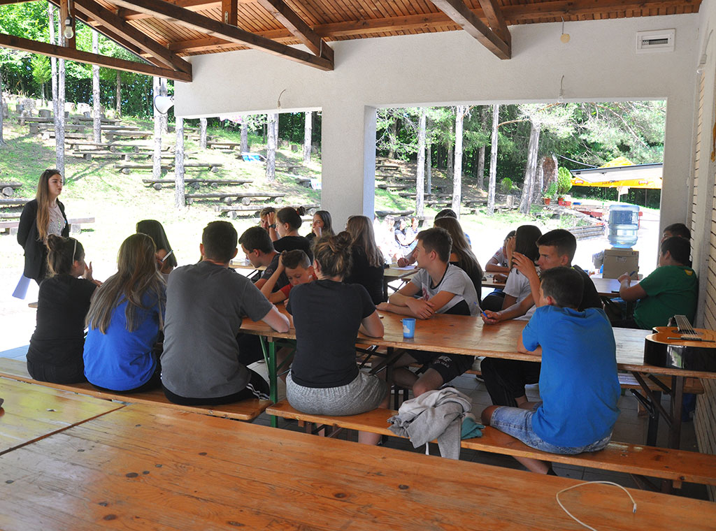 Po povratku u kamp uslijedile su radionice na tri različite teme, koje su vodile vršnjačke edukatorice Sunčica Đukanović, Anđela Paleksić i Deana Relatić. S mladima se razgovaralo o komunikaciji i prevazilaženju sukoba, razvoju empatije i osvještavanju postupaka koji su u osnovi pozitivnih poruka.