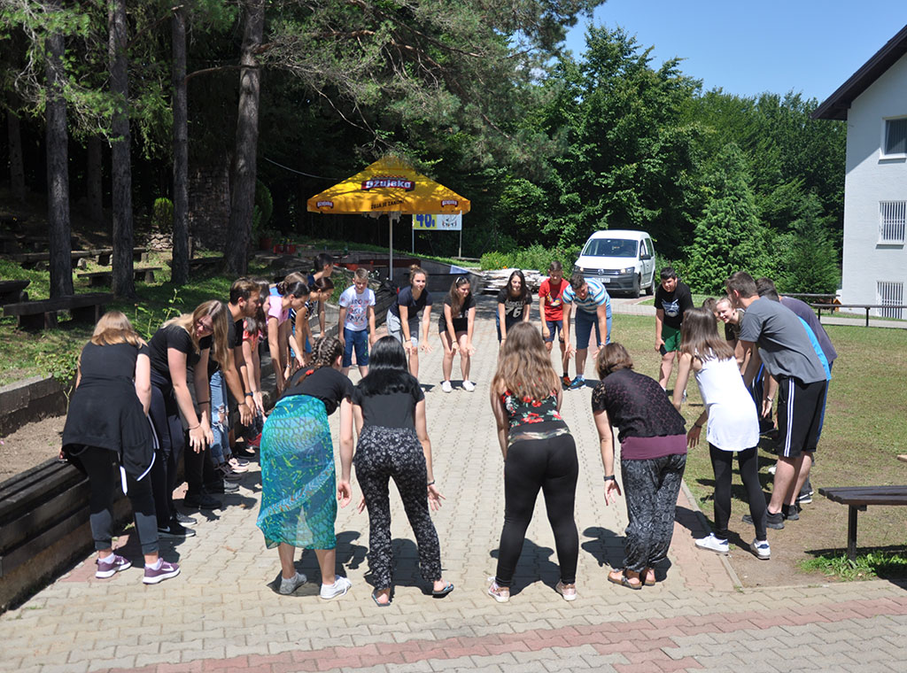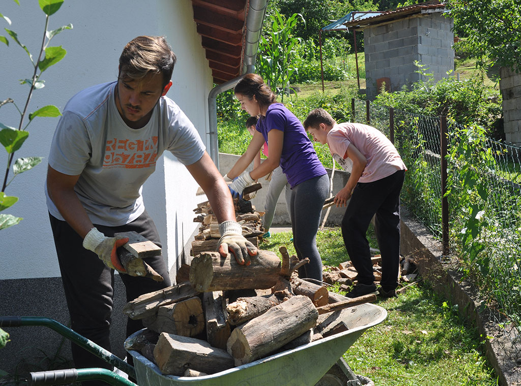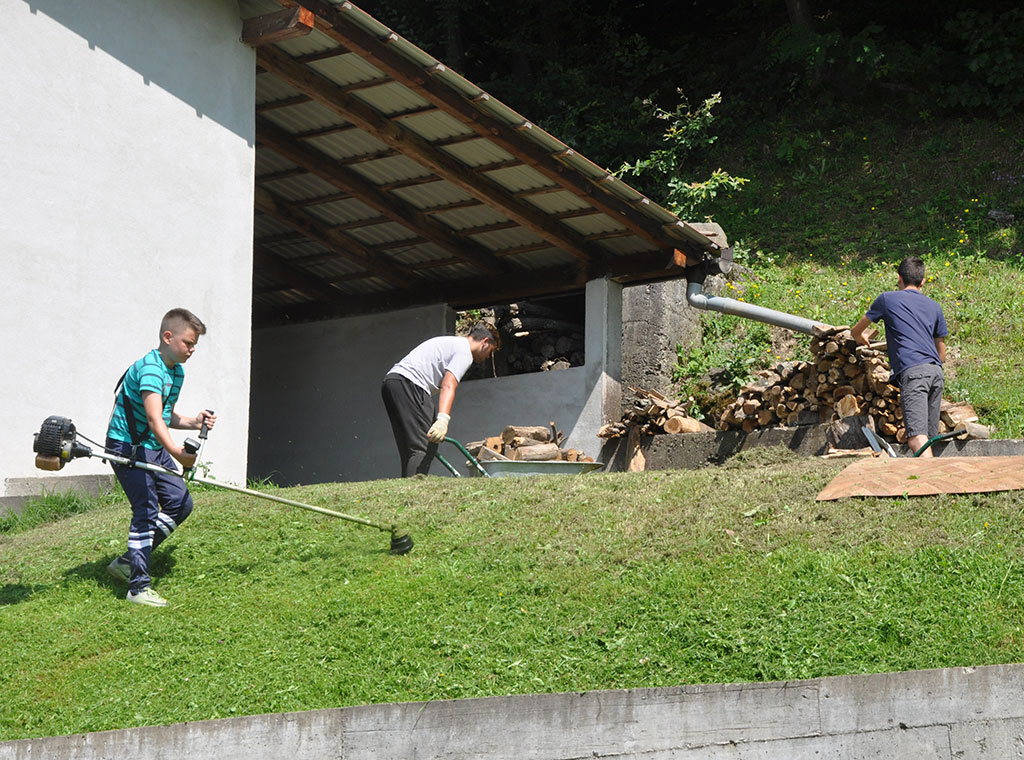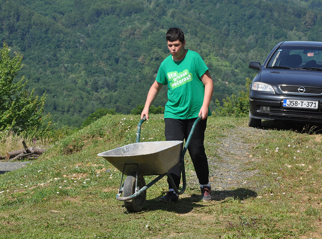 U srijedu 17. srpnja započeo je još jedan dan na kampu Friedensgrund BiH. Kroz prvi dio programa petog dana kampa, mladi su još jednom imali mogućnost pomoći lokalnom stanovništvu kroz volonterske akcije. Tako su podijeljeni u grupe posjetili obitelji, stara i iznemogla lica, kojima su uljepšali prostor u kojem borave i rade. Osim obiteljima u susjedstvu, jedna grupa sudionika je uređivala dvorište oko crkve u kojem borave u danima kampa.