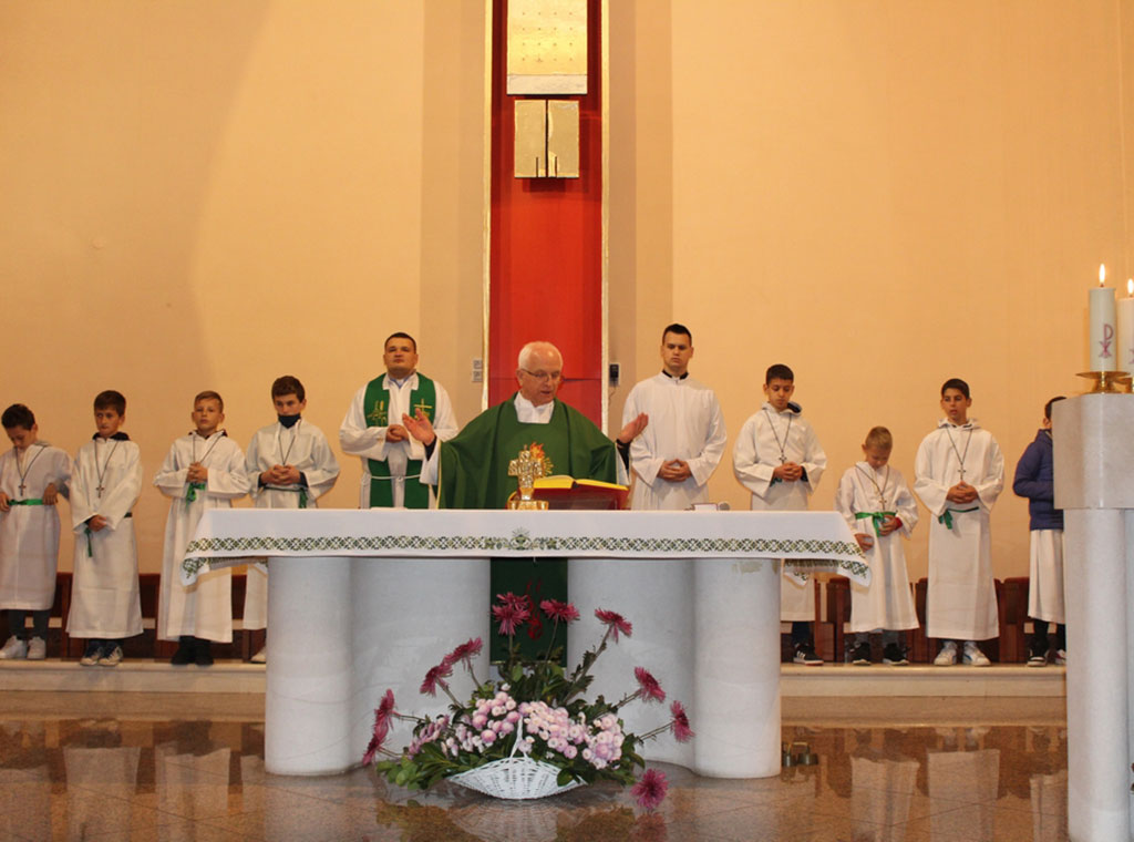 Prije početka sv. mise, vjernici su kao što su to običavali kroz sve dane listopada (izuzev nedjelja), zajednički molili krunicu, koju su uz odrasle predmolili i mladi članovi župne zajednice.