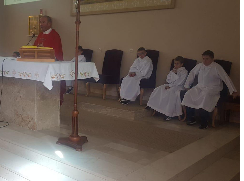 Učiteljice su im se rado pridružile u pripremanju programa te su svi zajedno i radosno zamolili Duha Svetoga za strpljenje u radu s djecom i mladima te uspješnu školsku i vjeronaučnu godinu. Pjevanje je animirao župni zbor.