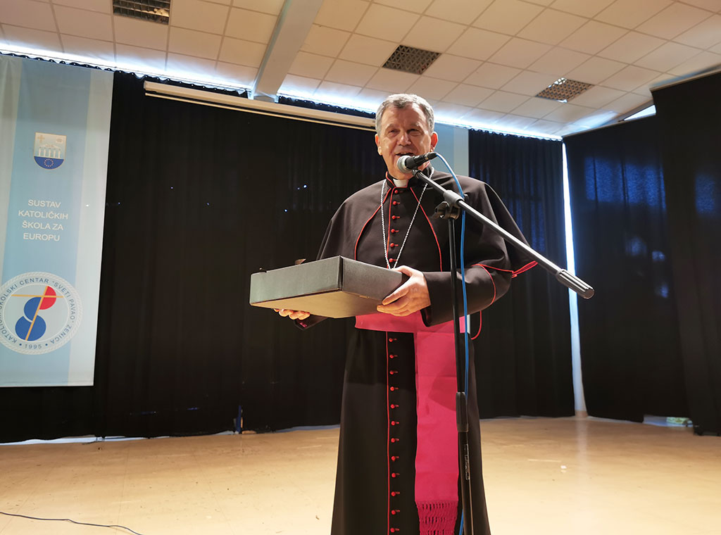 Poslije mise, proslava je nastavljena u amfiteatru škole. Nazočne goste, među kojima su bili ravnatelji i predstavnici ostalih Katoličkih školskih centara u BiH, pozdravio je vlč. Rosić koji je, uz ostalo, istaknuo kako je blagdan obraćenja Sv. Pavla prigoda zahvaliti Bogu za sva dobročinstva kojima obasipa ovaj Centar, ali i proslaviti sve uspjehe ove odgojno-obrazovne ustanove. „Prigoda je to i zastati i promisliti jesmo li još ostali na pravome putu, ili smo se negdje uz put izgubili u bespućima ovozemaljskoga života (…) Jer dok mlade ljude učimo idealima, moramo se odreći svojih zabluda koje nam priječe biti slobodni ljudi. Sv. Pavao je primjerom svoga života a napose svojim poslanicama, pokazao što znači biti potpuno slobodan od svega ovozemaljskoga i pripadati samo Bogu, a davati se u službu čovjeku“, rekao je ravnatelj te naglasio kako, nadahnjujući se na primjeru apostola Pavla, valja promicati vrjednote: ljubav prema Bogu, bratu čovjeku i Domovini. „Stoga koliko se god teško činilo i koliko god nam nedostajalo razloga za optimizam u današnjem vremenu i prostoru, potrebno je pronaći snage, ako ne zbog nas samih, onda svakako zbog naših učenika, kojima je potrebna naša pomoć i zaštita“, poručio je vlč. Rosić uputivši zahvalu svima koji su doprinijeli proslavi Dana zeničkog KŠC-a.