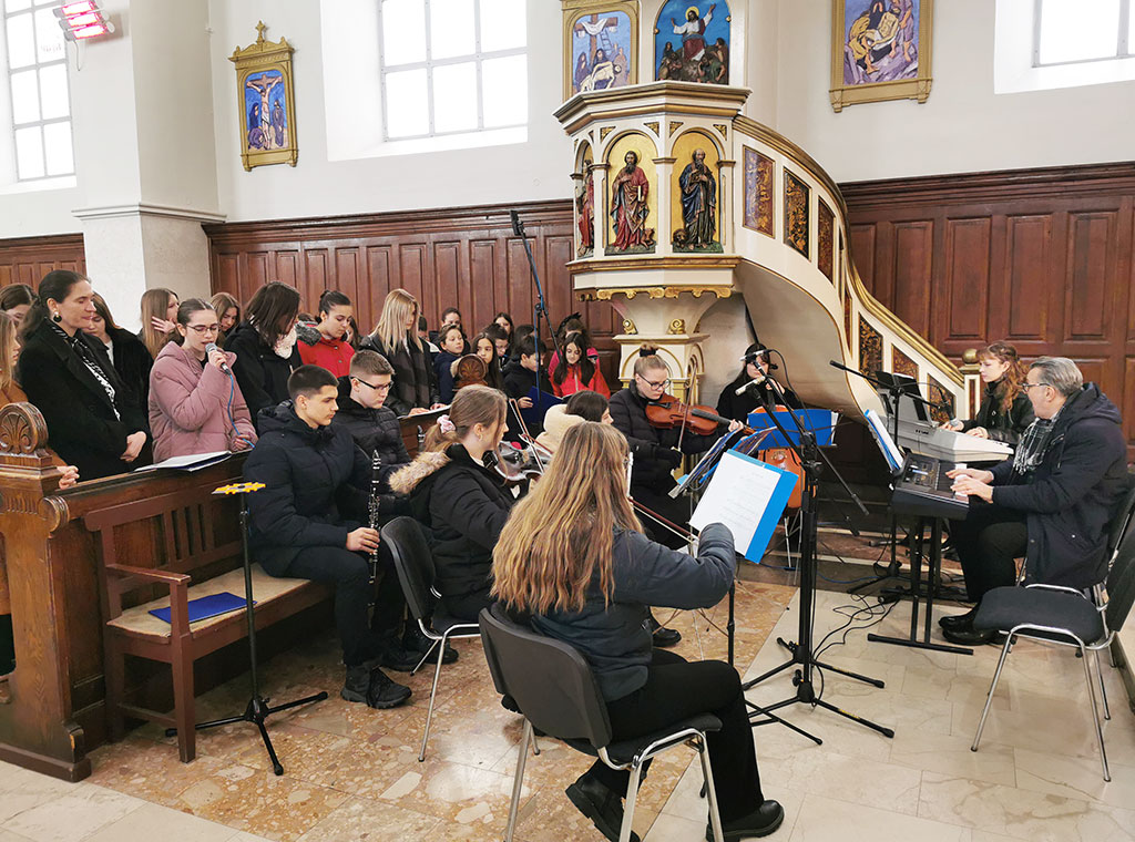 Misno slavlje pjevanjem i sviranjem animirao je školski zbor pod ravnanjem prof. Davorina Bošnjakovića.