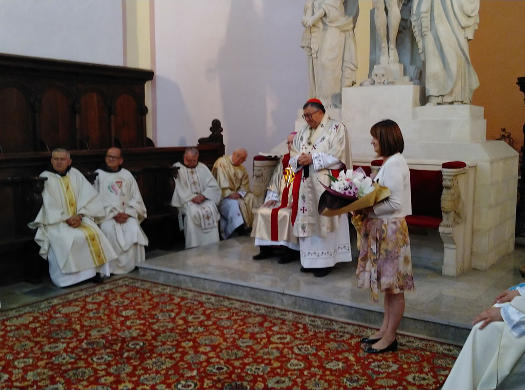 Na kraju svete mise kardinal se zahvalio dragome Bogu te istaknuo da ovo nije prigoda za čestitke njemu, jer on nije zaslužan za sve ovo, nego da je ova zlatna misa prilika da „svi zajedno uputimo hvalu dragome Bogu koji je učinio ovo divno djelo”. Zahvalio je i propovjedniku, te župniku i mons. Božinoviću koji su organizirali ovo slavlje, a pozvao je i sve prisutne na prigodni ručak koji se održao u kripti crkve.