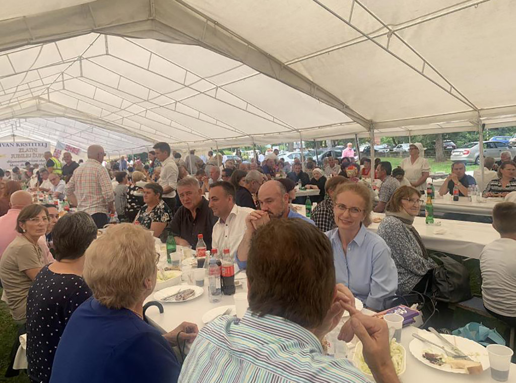 Nakon svečanog slavlja, darova i zahvala, druženje je nastavljeno zajedničkim ručkom pod šatorima u crkvenom dvorištu, u pjesmi i veselju s Draletom i Raščica bendom.