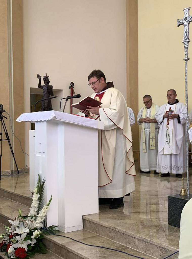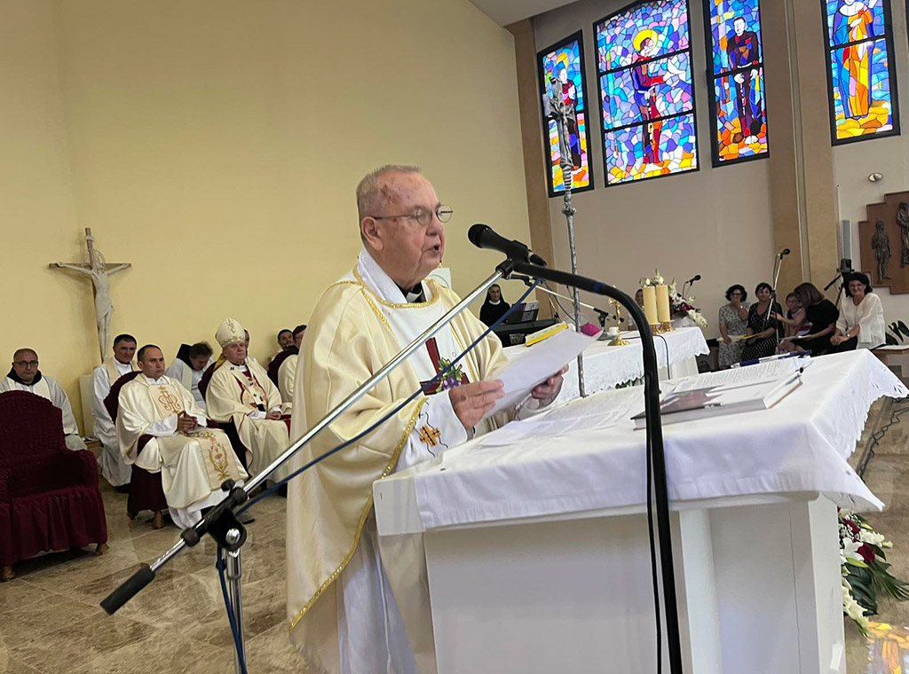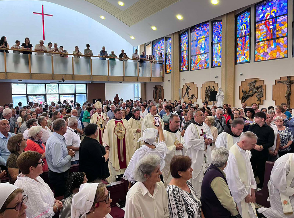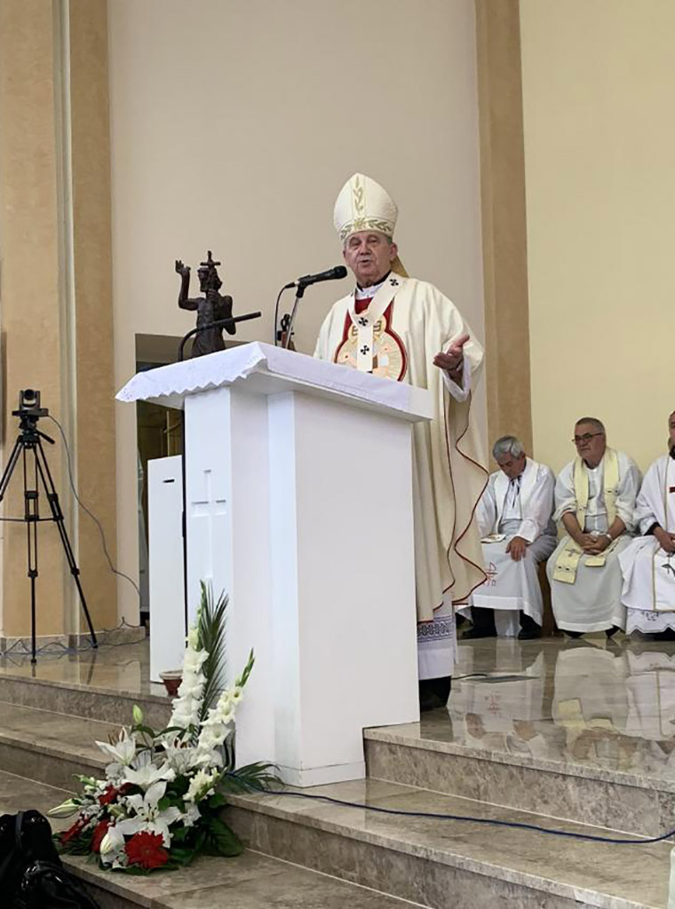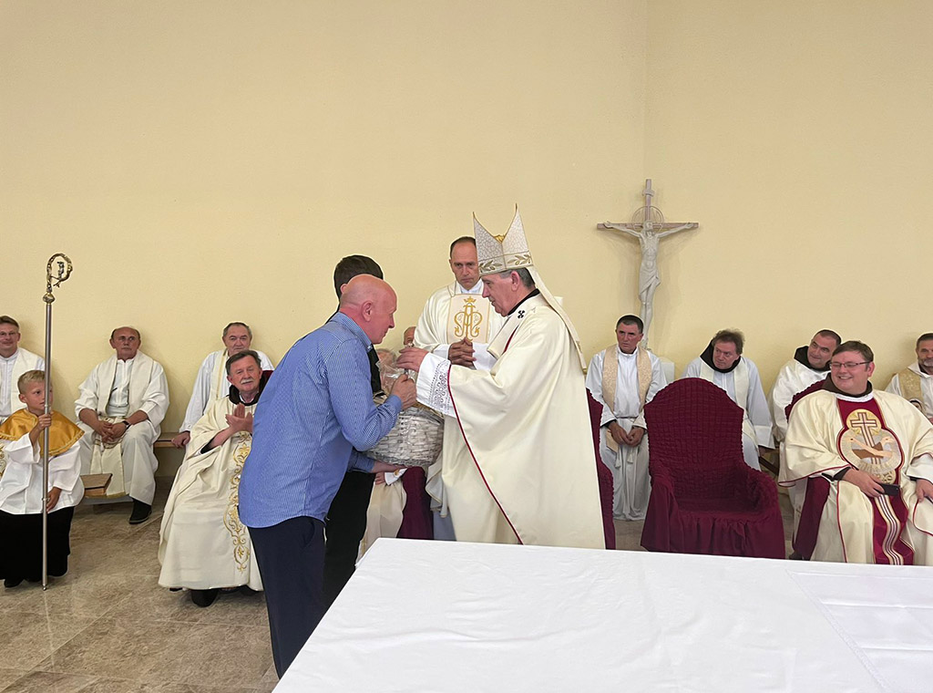 Nakon svečane procesije po novom platou ispred župne crkve, na početku sv. mise župnik fra Joso pozdravio je okupljene te pozvao vrhbosanskog nadbiskupa da započne misno slavlje.