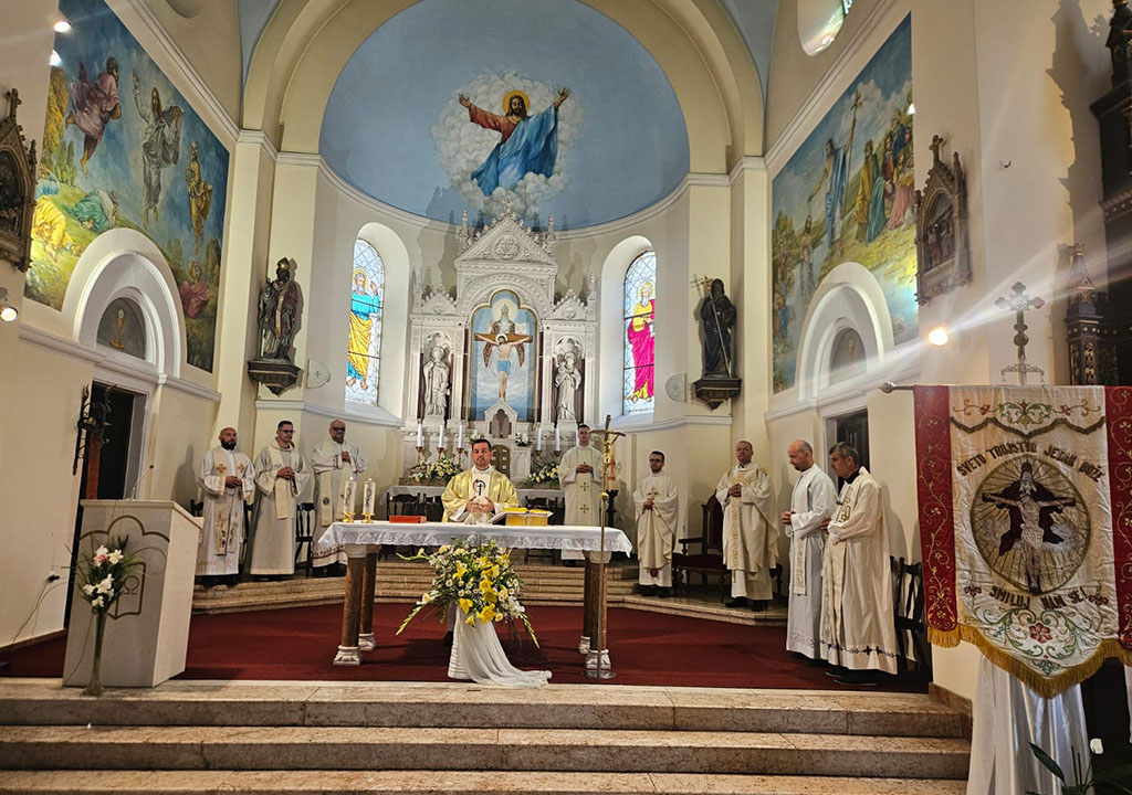 U prigodnoj propovijedi vlč. Jurić je tumačeći najveće otajstvo kršćanske vjere najprije istaknuo kako Presveto Trojstvo nije nikakva formula ili jednadžba nego život. Podsjetio je na Isusov zahtjev učenicima da pođu po cijelom svijetu i krste u ime Oca i Sina i Duha Svetoga. „I zato kršćanstvo nije vjera u jednog Boga koji sve promatra odozgo, nego vjera u Boga koji živi odnos – i koji nas poziva da budemo dio tog odnosa“, istaknuo je propovjednik te je primijetio kako u suvremenom svijetu postoje brojne podjele i to po naciji, po vjeri, po regiji, po stavovima. Poručio je kako upravo trojedini Bog ruši zidove i poziva na zajedništvo. „Bog je zajedništvo. I ako je čovjek slika i prilika Božja, onda smo i mi pozvani biti zajedništvo, a ne poligon sukoba. U prvoj Božjoj osobi, Ocu – učimo što znači dati život drugome. U Sinu – učimo što znači dijeliti sudbinu s drugima. U Duhu – učimo što znači dati prostor drugome da diše. Trojstvo nije teorija, već poziv. Crkva koja slavi Trojstvo, ne smije biti sekta zatvorenih vrata, nego dom otvorenih ruku“, kazao je vlč. Jurić.