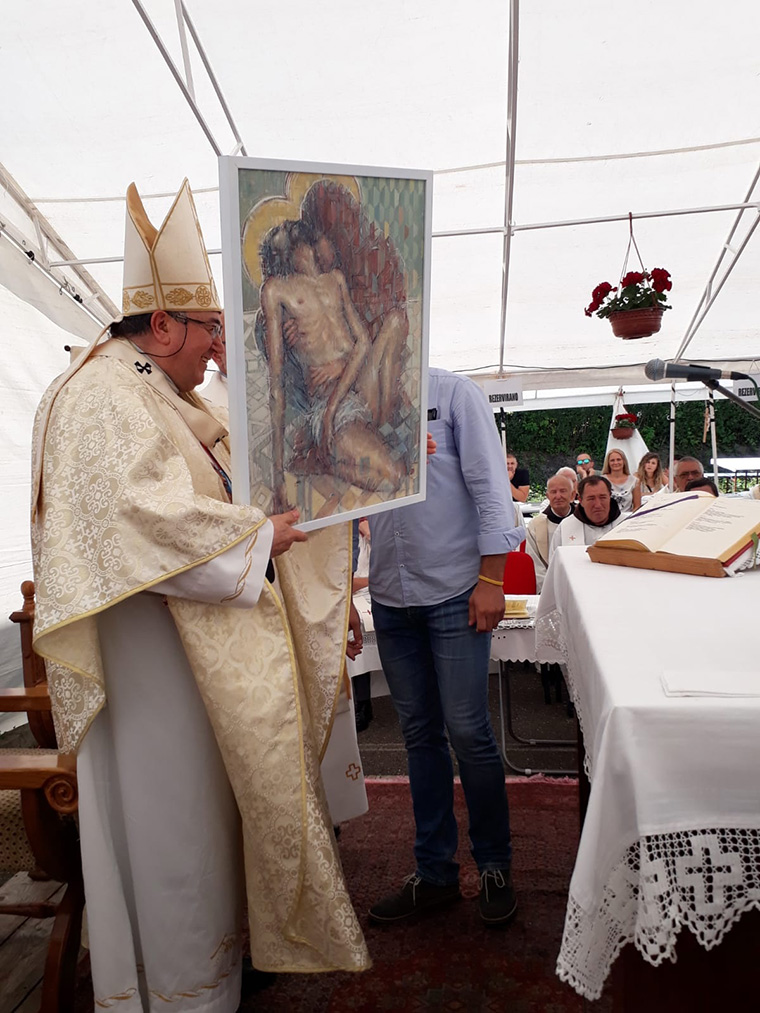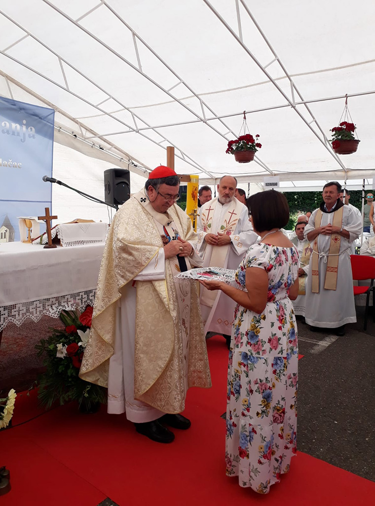 Na kraju mise koju je koju je pjevanjem animirao župni zbor iz Žepča, okupljene vjernike među kojima su bile sestre Kćeri Božje ljubavi iz Ugande, pozdravio je župnik Hrskanović, a umjetnik Robert Samardžić darovao je kardinalu jednu sliku.