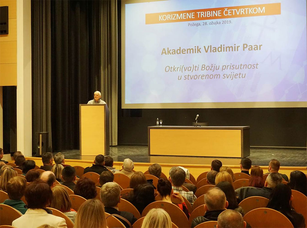 Poznati hrvatski znanstvenik i fizičar akademik Vladimir Paar održao je predavanje „Otkri(va)ti Božju prisutnost u stvorenom svijetu“ na trećoj korizmenoj Tribini četvrtkom 28. ožujka u požeškoj Dvorani Sv. Terezije Avilske.