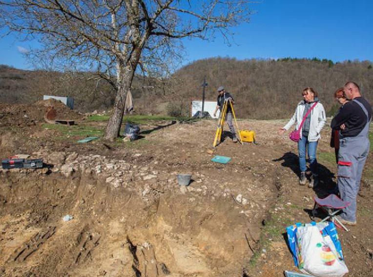 Zbog neposredne blizine ostataka ranogotičke monumentalne crkve otkrivene u rujnu 2013. pristupilo se detaljnom istraživanju i tog područja koje za Sisačku biskupiju izvodi ovlaštena tvrtka Kaducej d.o.o. pod vodstvom arheologinje Dženi Los.