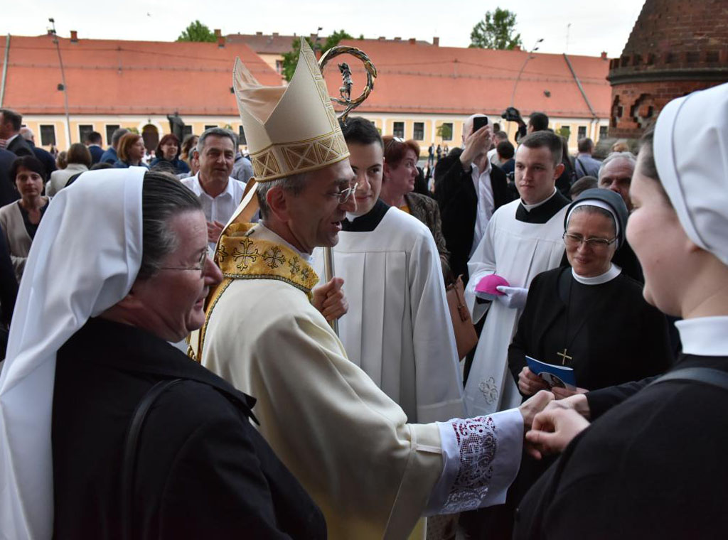 Nakon svečanog blagoslova pjevana je hrvatska himna, a potom je novozaređeni biskup, praćen svim nadbiskupima, biskupima i svećenicima u procesiji izašao iz katedrale. Na trgu pred katedralom hodočasnici su se zadržali u pjesmi i radosnom zajedništvu, predvođeni članovima Folklornog ansambla Brod te uz kolače koje su pripremile župljanke slavonskobrodske župe bl. Stepinca.