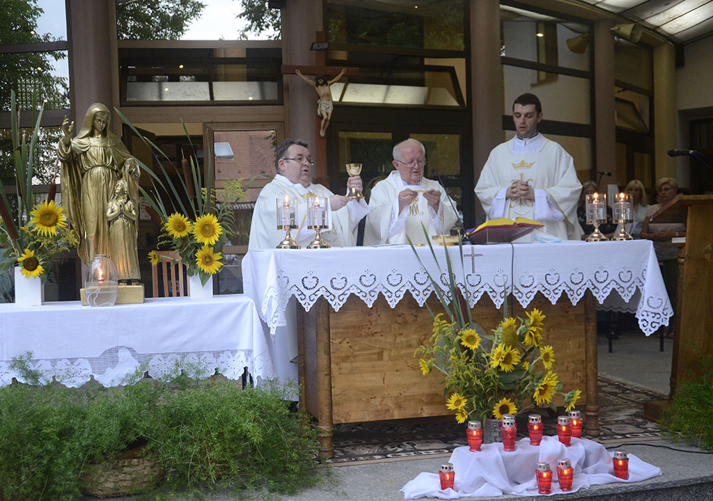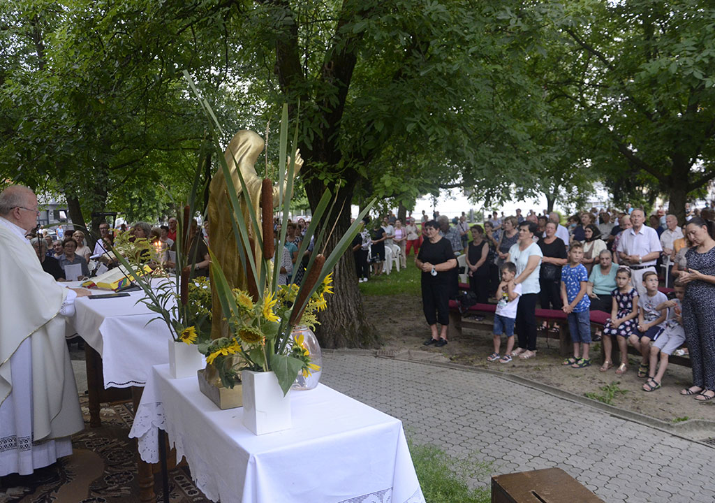 Blagdansko slavlje u večernjim satima na vanjskom oltaru predvodio je mons. Stjepan Belobrajdić, župnik u miru i začasni kanonik. Uz župnika Ivana Lenića suslavio je vlč. Marko Martić, Brođanion na studiju u Rimu.