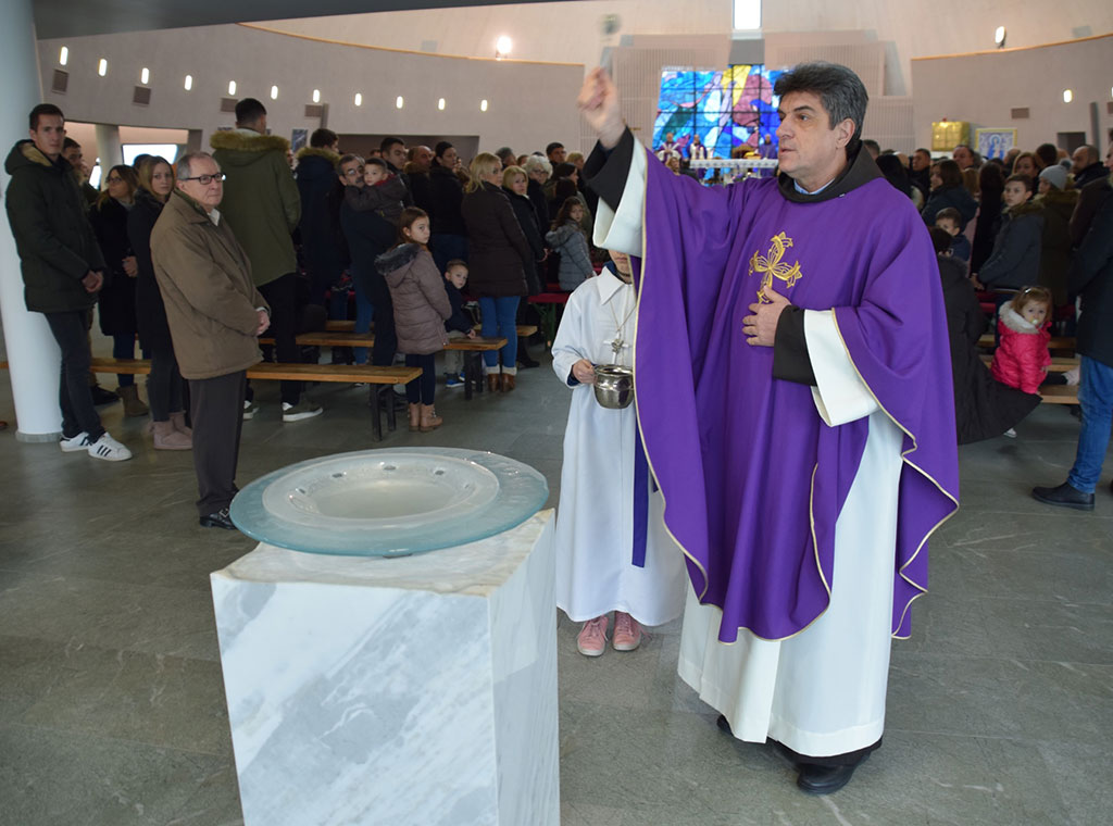 Misno slavlje je skladnim sviranjem i pjevanjem adventskih pjesama uzveličao mješoviti župni zbor pod ravnanjem glazbenice i voditeljice zbora Petre Pleš, a misno slavlje je bilo i izravno prenošeno na programu Hrvatskog radia i Laudato. Nakon misnih čitanja i zaziva molitve vjernika koje su čitali Sonja Batinić, Davorka Galić i Josip Tolić, te navještaja evanđelja fra Stipe Karajice, provincijal fra Jozo Marinčić je blagoslovio novu krstionicu i postaje križnog puta, te nakon toga održao i prigodnu propovjed.