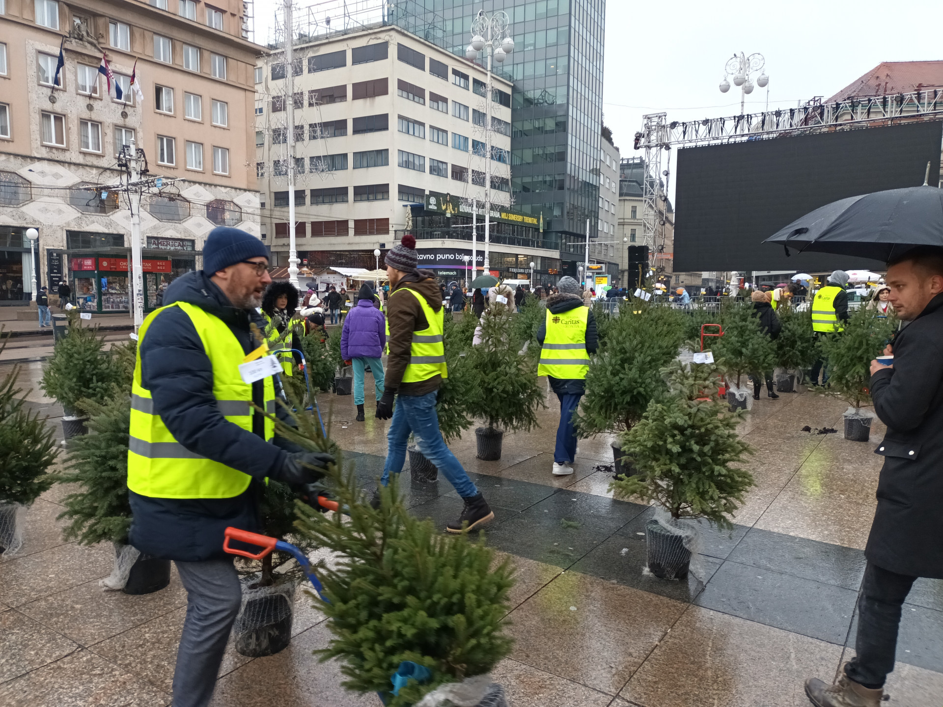 U sklopu nacionalnoga humanitarnog programa „Za 1 000 radosti – Govori dobrim!“ Hrvatski Caritas u suradnji s Hrvatskim šumama d. o. o. organizirao je 17. prosinca na Trgu bana Jelačića prodaju božićnih jelki kako bi se prikupila pomoć za siromašne obitelji.