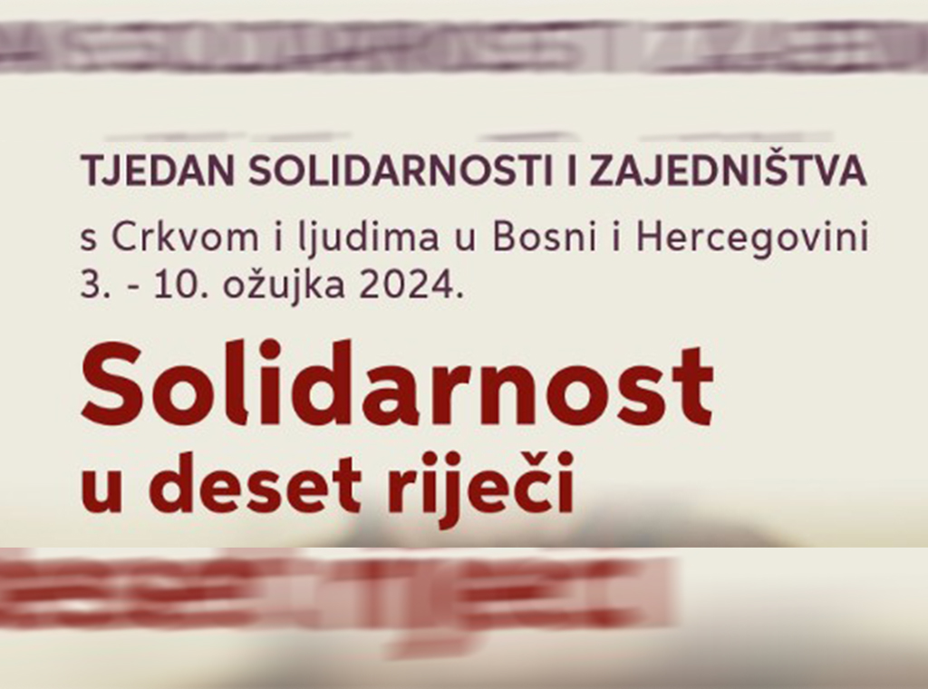 Podsjetimo, Hrvatski Caritas, odlukom Hrvatske biskupske konferencije, provodi program pod nazivom Tjedan solidarnosti i zajedništva s Crkvom i ljudima u Bosni i Hercegovini. Njegova je svrha vjerničkoj i općoj javnosti u Republici Hrvatskoj osvijestiti što nas sve s Crkvom i Hrvatima u Bosni i Hercegovini veže – u geopolitičkom, kulturnom, znanstvenom, sportskom, demografskom, a napose vjerskom, vjerničkom i humanitarnom smislu – i zašto je za položaj hrvatskog naroda u Bosni i Hercegovini važno osjetiti bratsku skrb, sućut i zajedništvo.