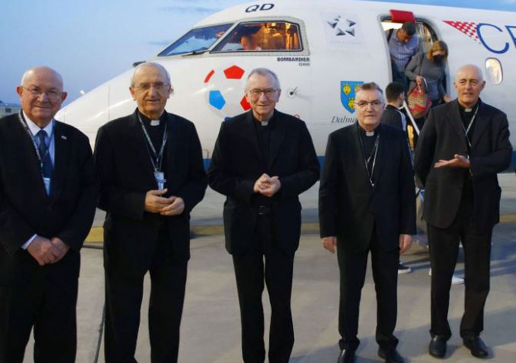 Kardinala Parolina dočekali su apostolski nuncij u Republici Hrvatskoj nadbiskup Giorgio Lingua, predsjednik Hrvatske biskupske konferencije zadarski nadbiskup Želimir Puljić, zagrebački nadbiskup kardinal Josip Bozanić, generalni tajnik HBK preč. Krunoslav Novak te posebni savjetnik za vanjsku politiku hrvatskoga premijera Mate Granić.