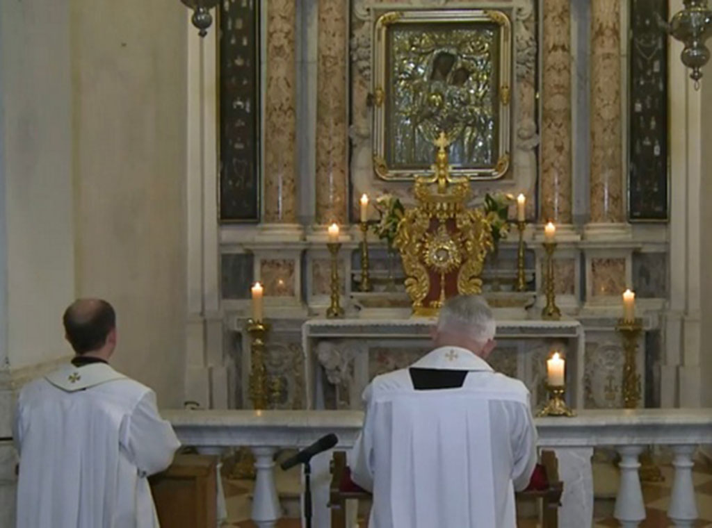 Večernju molitvu pred oltarom Gospe od Porata u dubrovačkoj katedrali predvodio je dubrovački biskup mons. Mate Uzinić s katedralnim župnikom don Marinom Lučićem i generalnim vikarom don Hrvojem Katušićem. Molitva je praćena pjesmom voditeljice katedralnog zbora prof. Maje Marušić, piše na mrežnoj stranici Dubrovačke biskupije.