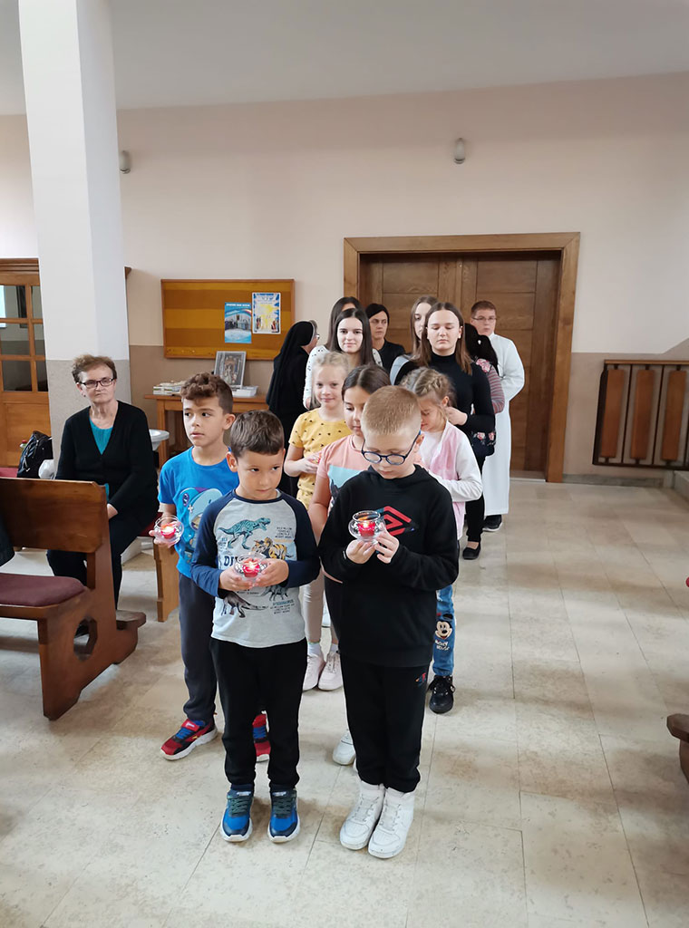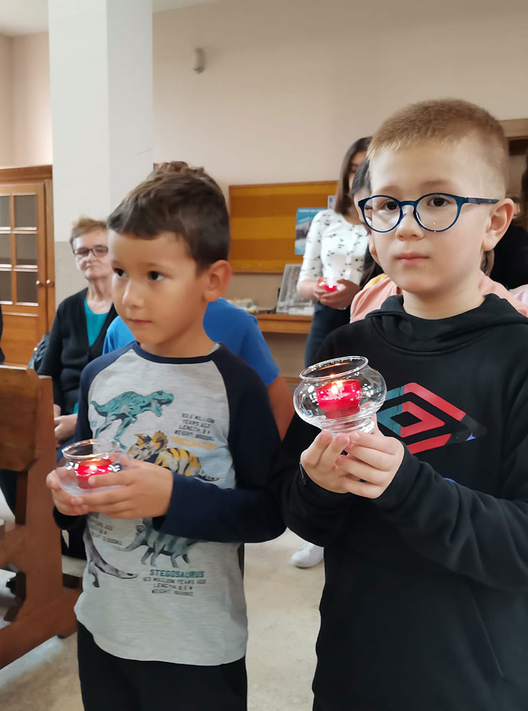 U ulaznoj procesiji prije mise uz župnika su s upaljenim svijećama oni najmlađi Prijatelja Maloga Isusa došli do povijesnih jaslica, koje su za tu prigodu donesene iz stare štitarske crkve i položene do oltara.